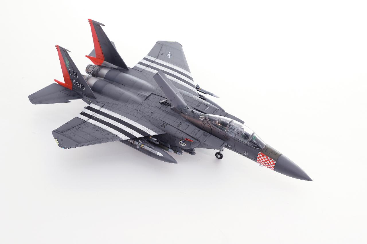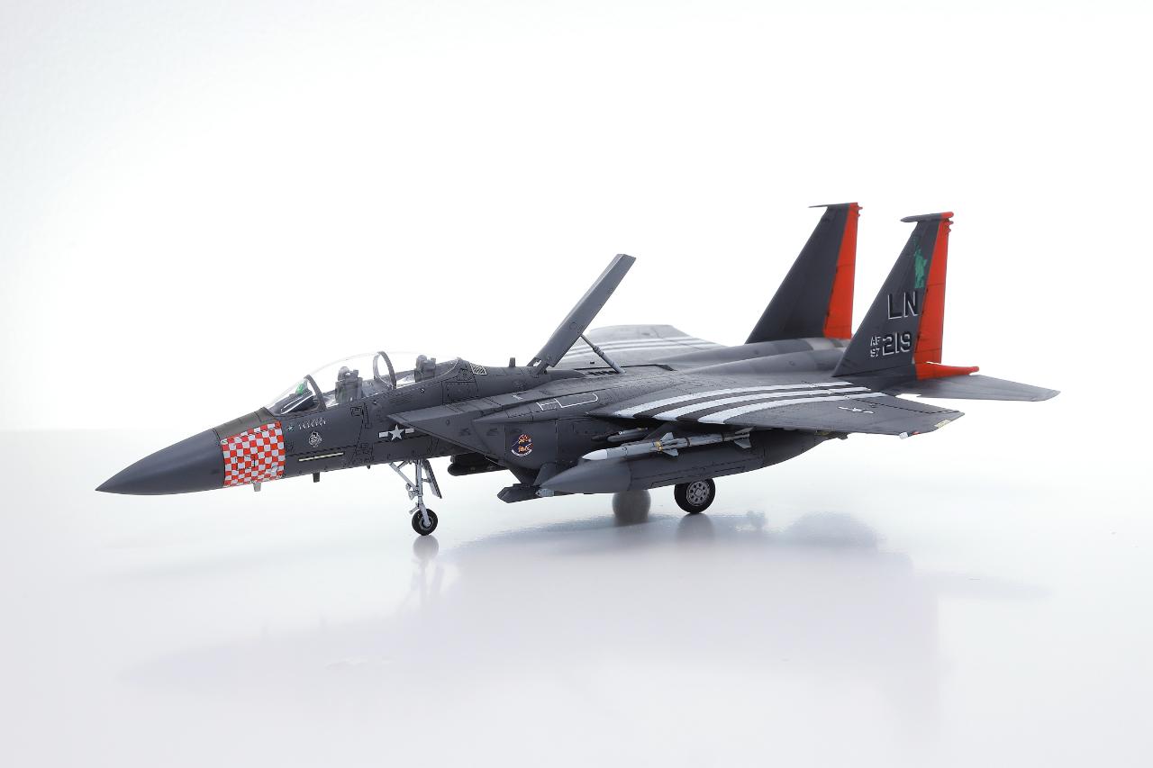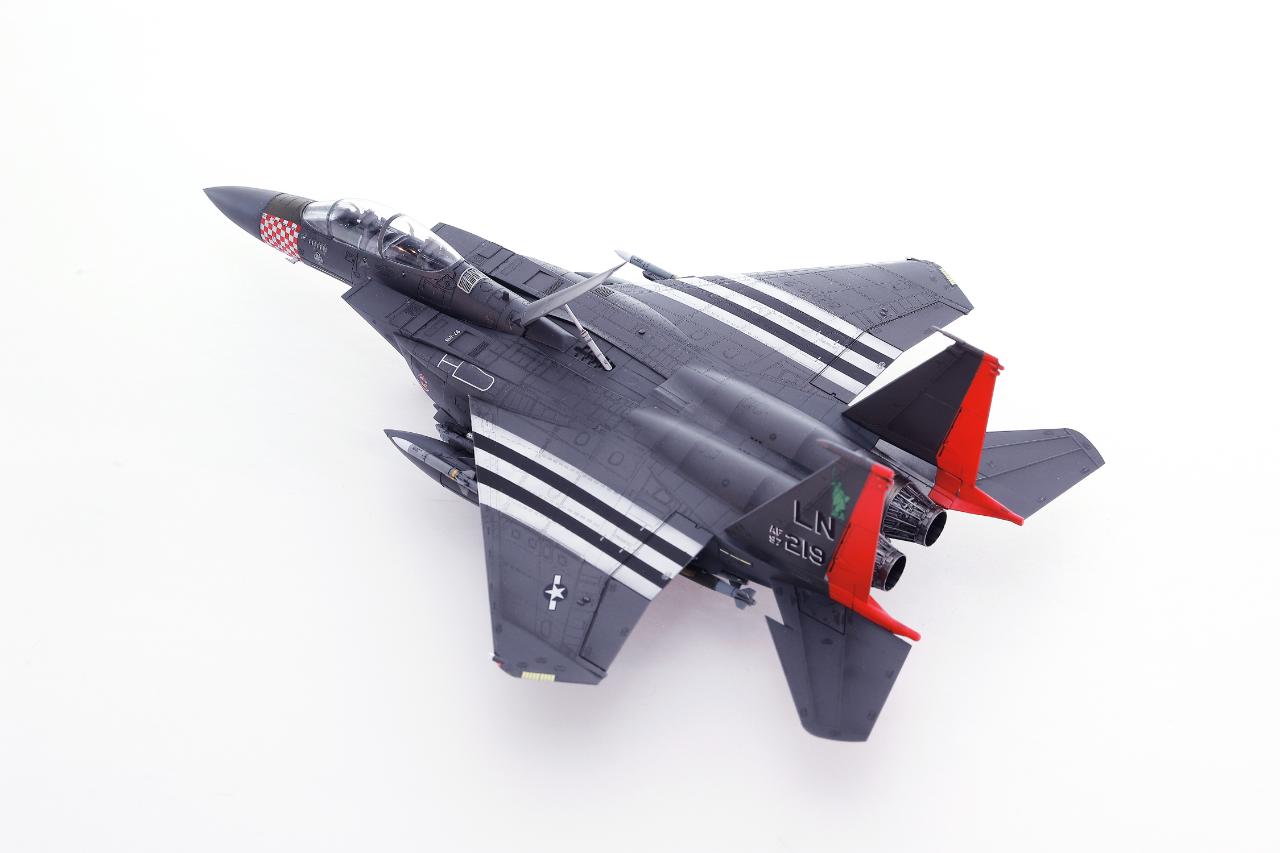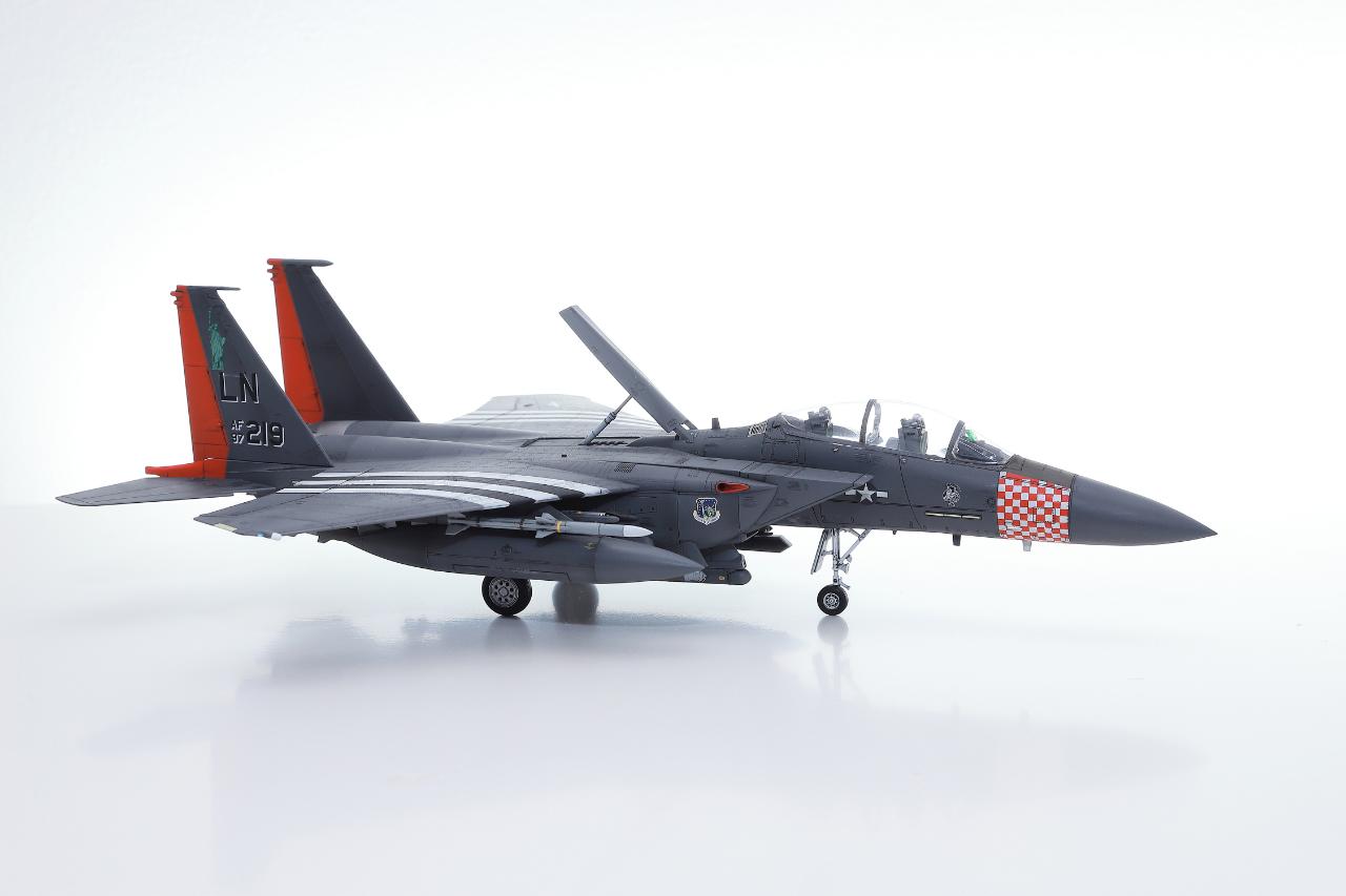 마킹이 화려한 아카데미 F-15E입니다. 1/72 스케일에 조립성과 디테일이 훌륭해서 즐겁게 작업했습니다. 주익과 배면 스트라이프와 붉은색 위장무늬는 스텐실로 도장했습니다. 기수의 깨알같은 체크무늬 스텐실은 인내심을 테스트하는 기분으로 마무리했구요.