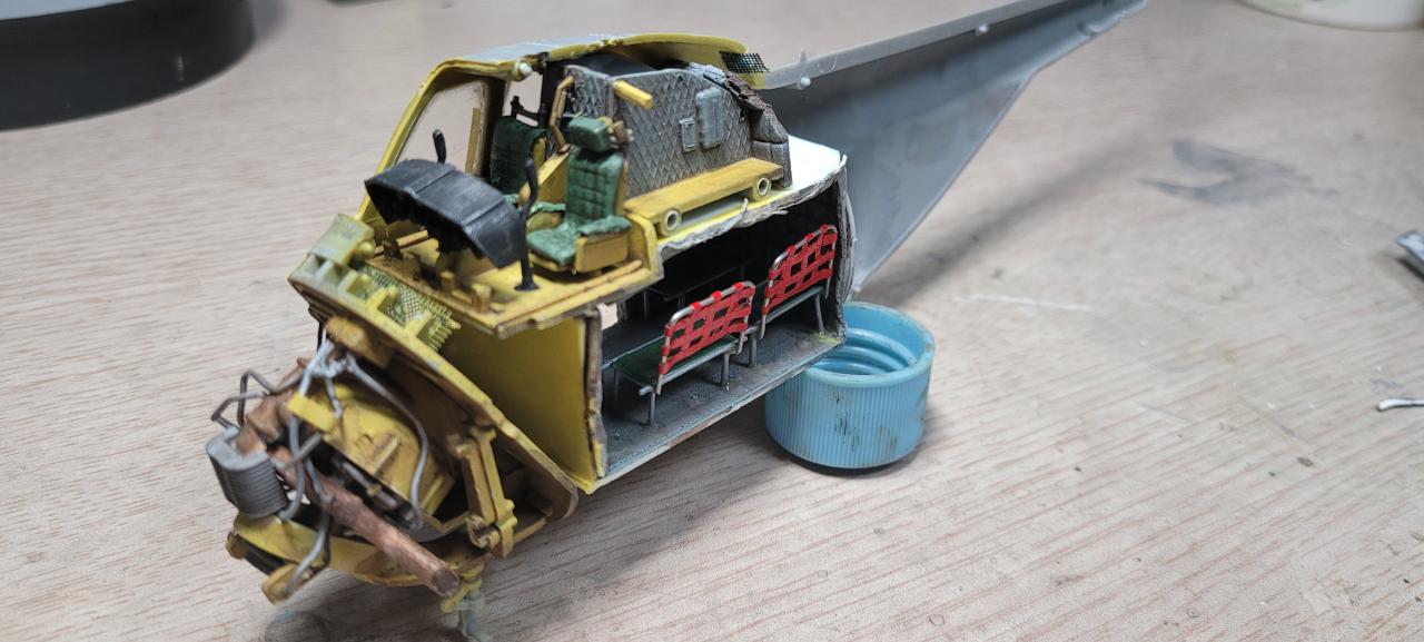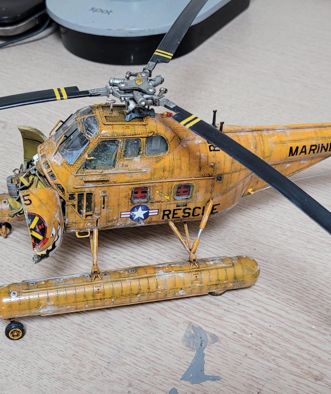 pallettewing이라는 항공기 도장 정보 사이트에서 찾은 미해병대 구조대 버전으로 도색했습니다.캔스프레이가 너무 많아 처분하고자 두텁게 뿌리고(키트에 패널라인이 아예 없는 제품입니다) 염분끼 가득한 걸 표현해 봤습니다 그리고 내일 당장 퇴역 스크랩갈 건 같은 분위기도 파스텔로 해봤는데 어렵네요