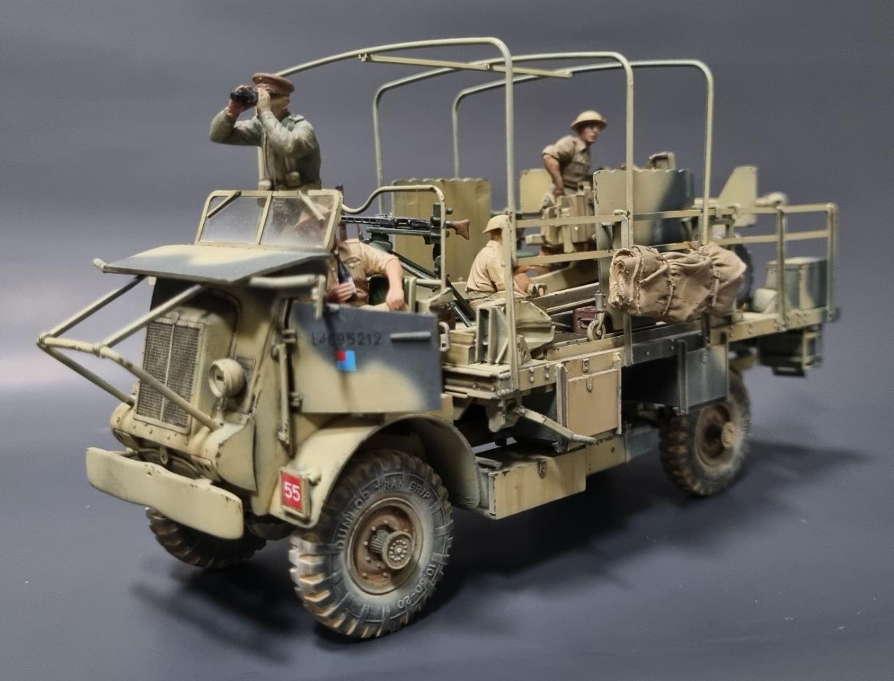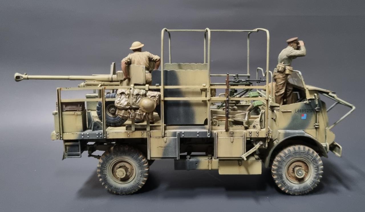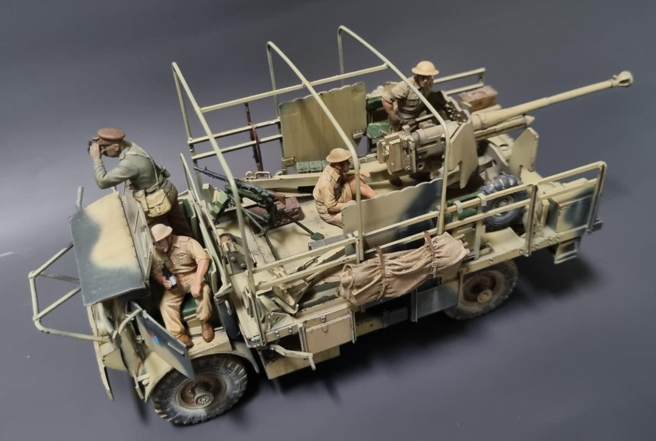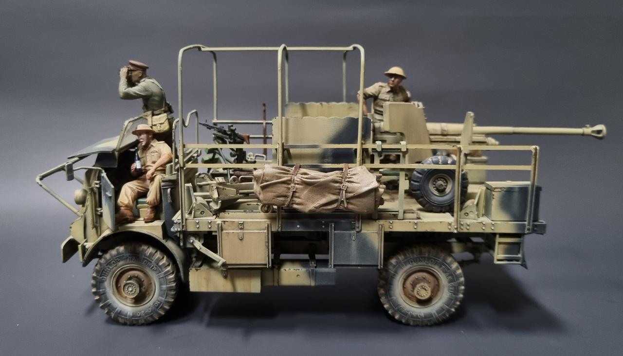 오래된 이탈레리 1:35 베드포드 트럭을 만들고 보니 원래 6파운드 대전차포를 이고 있는 구조여서 타미야 6파운드 포를 구해서 올리고 미니아트 장갑차병들과 아프리카 독일군들을 개조한 영국군들을 올려주었습니다.