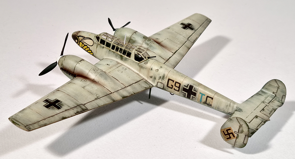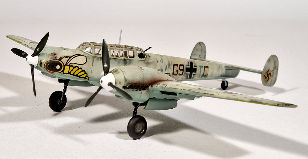 투박한 플러스 몰드의 킷트입니다. 기수의 말벌은 ZG1 (1st Destroyer Wing)의 문양이며, 1941-2년의 겨울 러시아 침공 시의 겨울 위장을 하고있습니다.