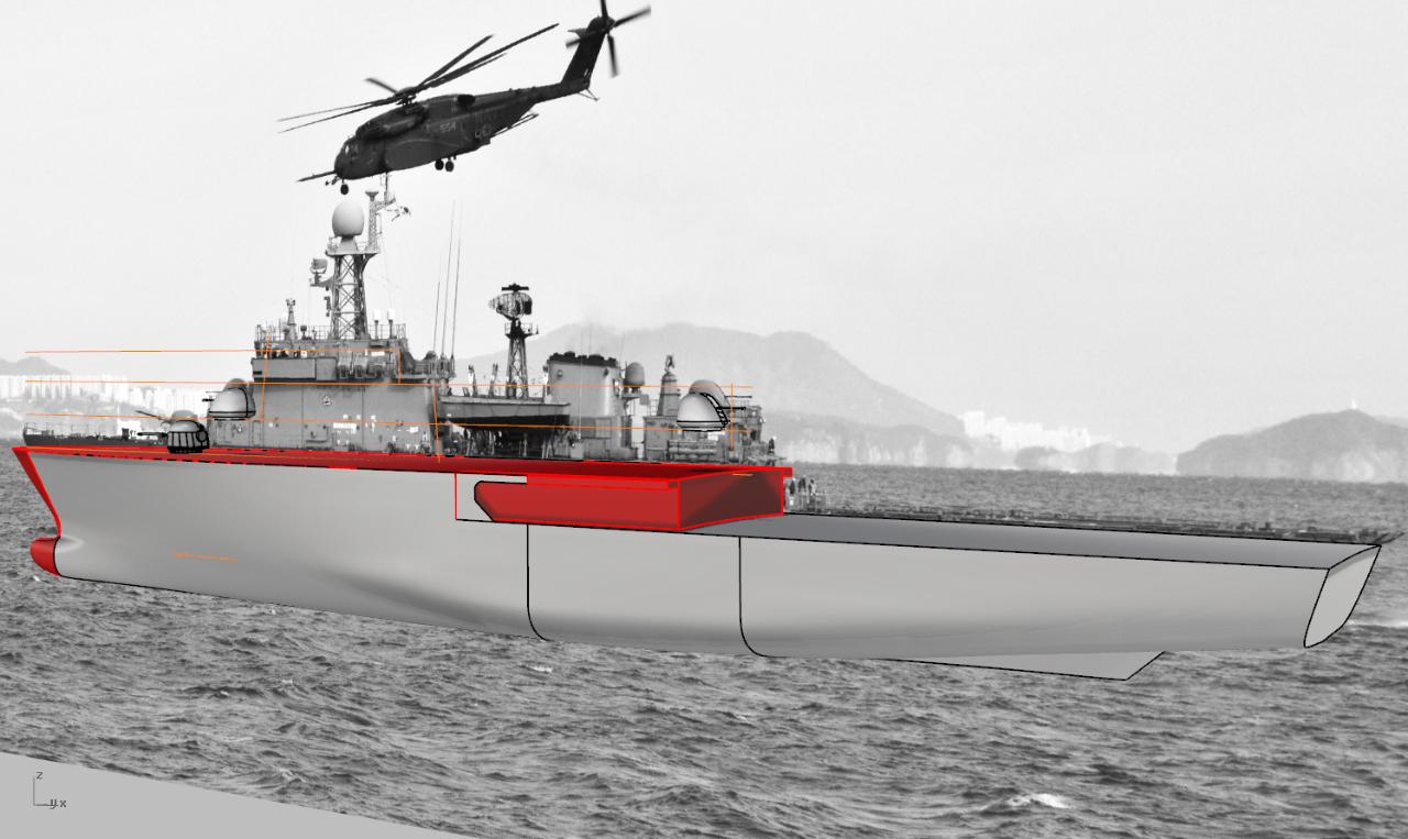한미연합 기뢰대항전 훈련에 참가한 원산함 측면도를 최대한 활용하여 모델링 기본도면을 그렸습니다.