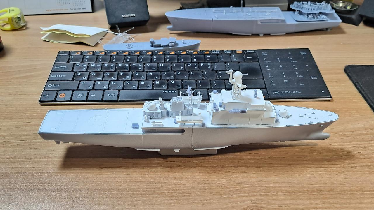 우리해군 군함을 고집하여 자작을 하다보니 1/100 스케일을 못 벗어났었는데, 레진 프린터의 도움으로 보통 스케일인 1/350으로 이렇게까지 만들어낼 수 있게 되었습니다.