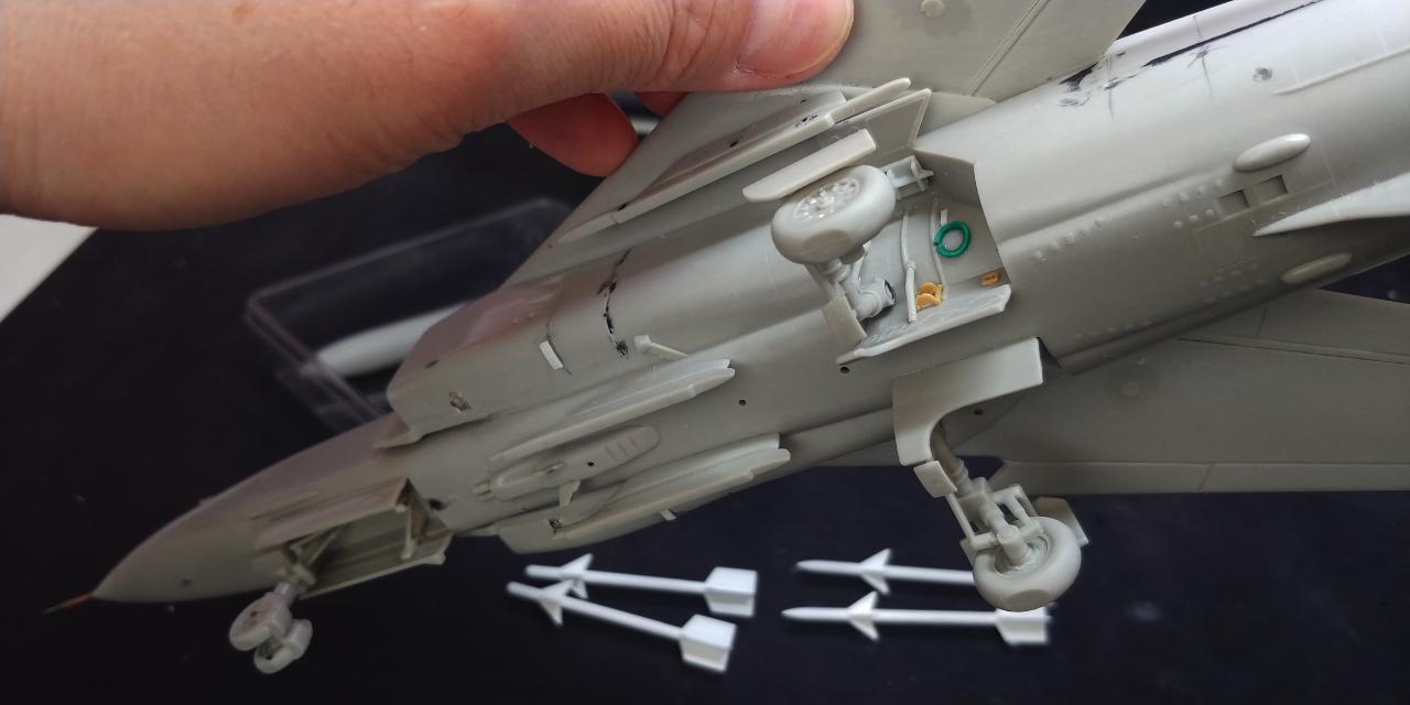피토관과 안테나들과 애프터버너, 랜딩기어베이를 적당히 추가하였고 콕핏 및 파일럿 추가 및 아카데미 무장을 추가하였습니다. 사진 정리하다보니, 캐노피 씰을 추가하지 않았군요.. .