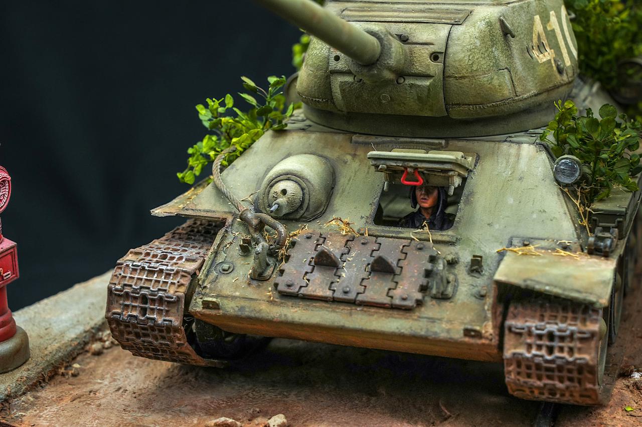 한국전 당시 북한군 T-34는 소련군과 유사한 도색을 하고 있지만 해치 안쪽이 내부색과 같은 흰색으로 재도색되었으면 몇몇 고리가 붉은색으로 칠해져 있으며 보조 연료통에 포탑 번호가 쓰여져 있는 특징이 있습니다.