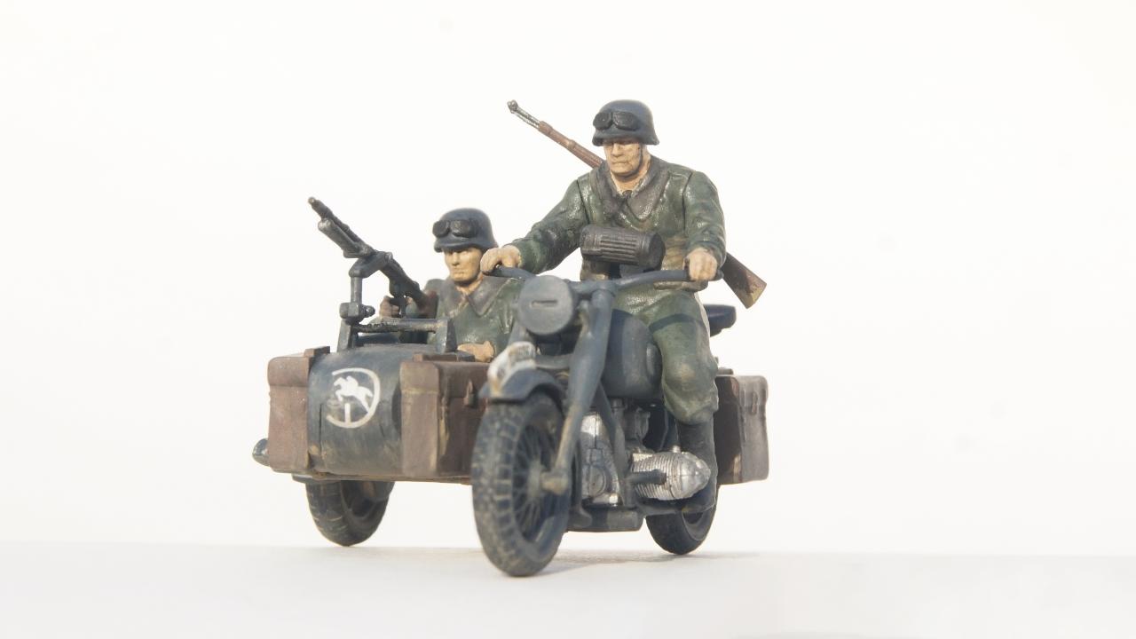 그래도 한손에 올릴 수 있어 재밌는 친구입니다. 맞다, 그러고보니 타미야 1/35 88mm 대공포나 1/35 아르덴 대공세 킹타이거를 비롯한 몇몇 키트들과 추후 신제품으로 예정된 아프리카 군단 4호전차 F형에 오토바이 병이 있던데...