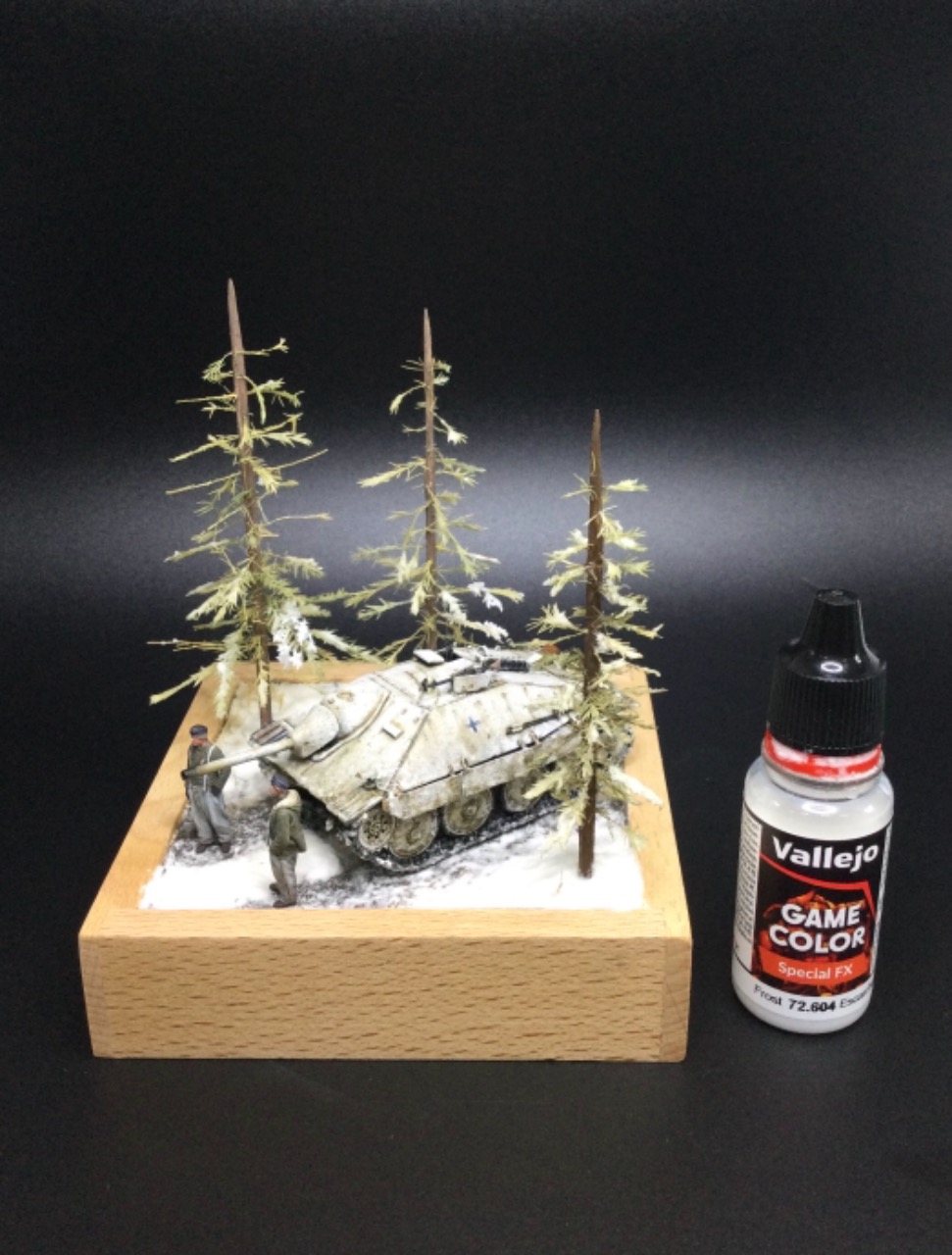 아스파라거스잎으로 만든 소나무 위의 눈쌓인 표현에 사용해본 바예호게임컬러 frost 도료입니다. 붓으로 바른 후 말리면 되는데, 어떤부분은 잘 마르지 않고 반투명한 상태로 굳어버리더군요. 다루기가 조금 까다로운것 같습니다.