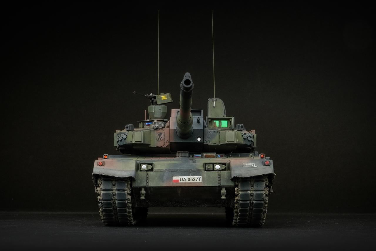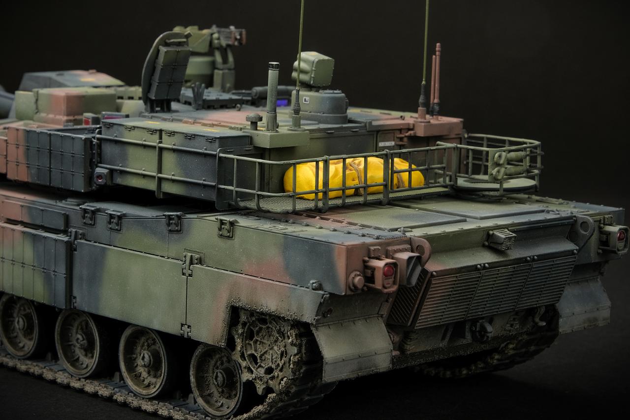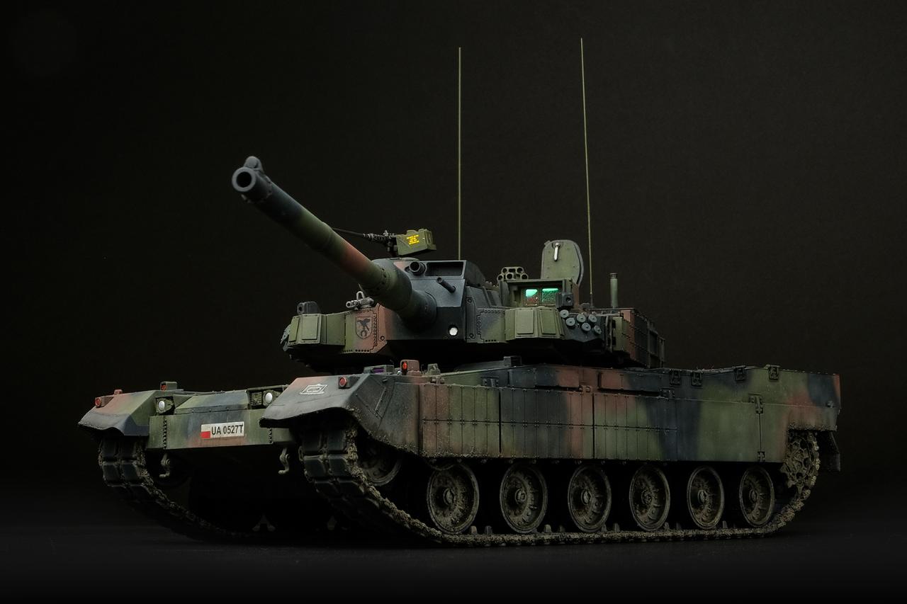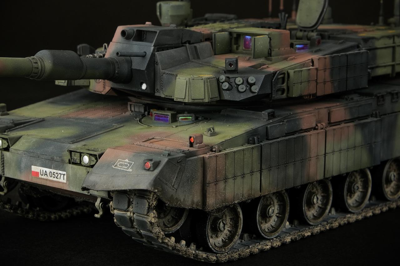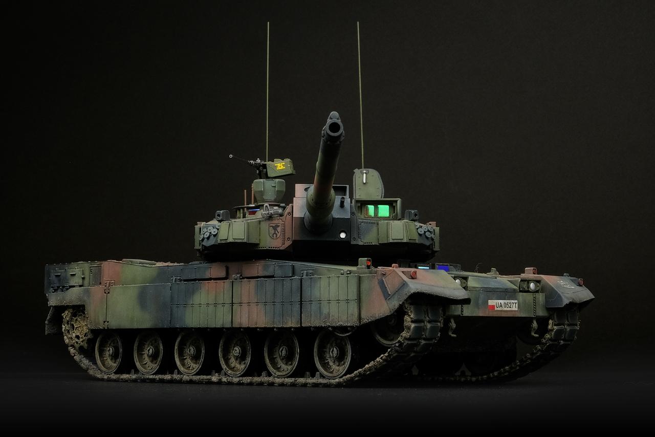 폴란드군 야전 훈련에서 노출된 사진을 보니 포탑 뒤의 스노클장비와 전방의 사이드미러가 제거된 상태로 기동하고 있어서 스노클장비의 원형 받침대만 달아 주었고 포탑 상면의 수신호기는 깃봉은 잘라주고 홀더만 표현했습니다. 같은 사진에 포탑 바스켓에 뭔지 모를 작은 노란색포대를 하나씩 적재하고 있길래 다른 키트의 남은 액세서리를 추가했습니다.