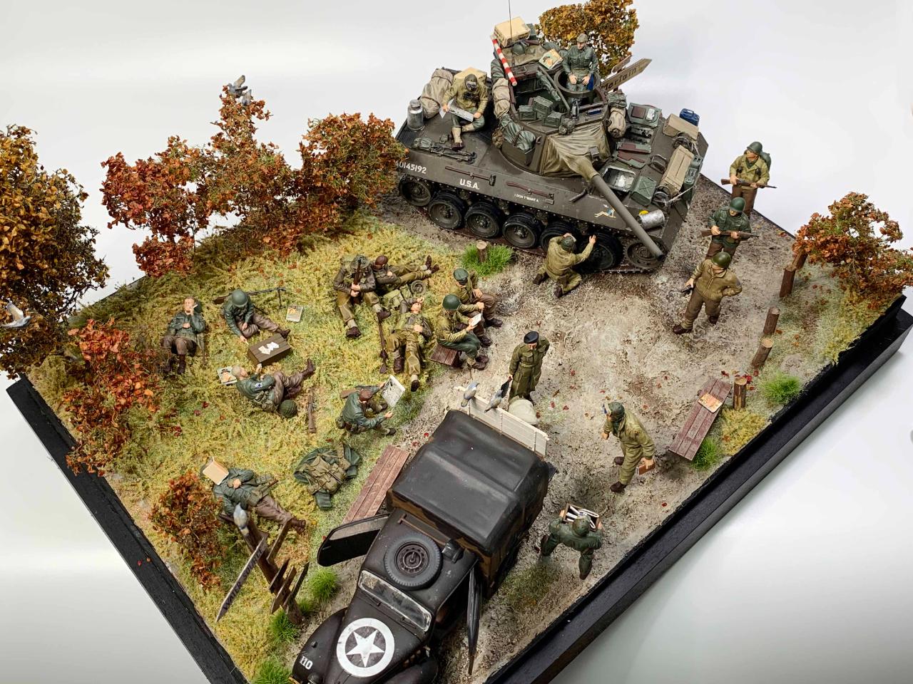제작에 사용된 제품들은 아카데미 m18헬켓, 타미야 10HP, 그리고 미니아트, 타미야 등의 인형들을 활용하였습니다.