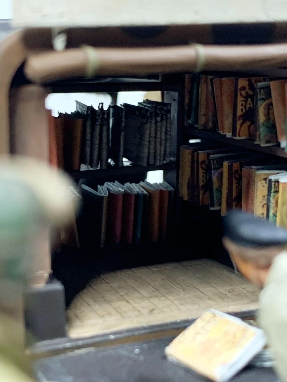 도서관 차량안은 프라판으로 2단짜리 책장 3개를 만들어준 뒤 스케일에 맞게 책들을 프린트하여 제작해주었습니다.
