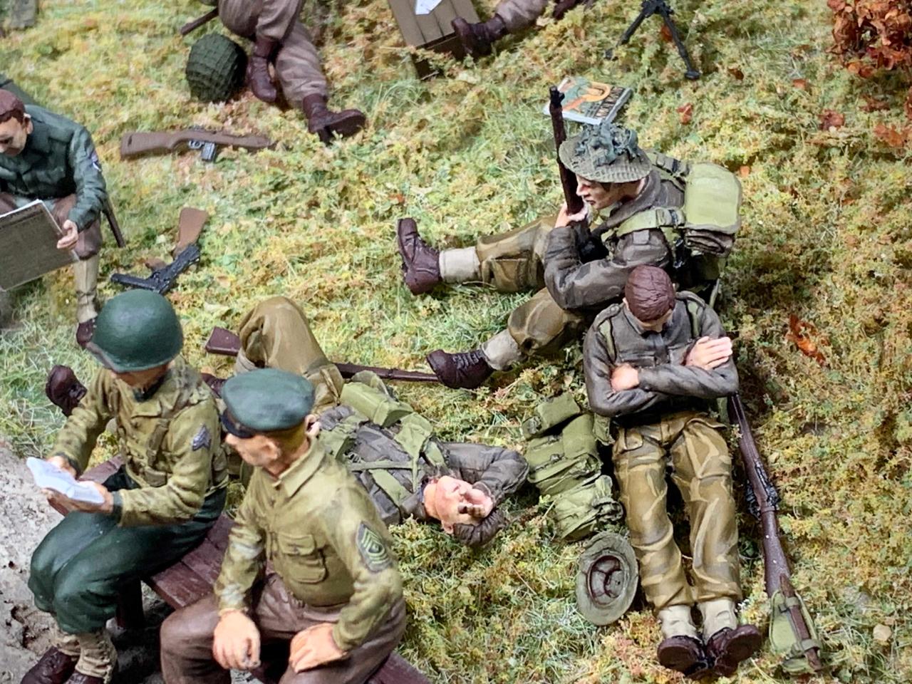 유럽전선은 다양한 국가들이 대치하였던 전장이었고 작전은 각자의 지휘체계에 따라 진행되었겠지만 휴게하는 공간만큼은 평화롭게 함께하며 쉬는 모습을 그려내면 어떠할까 라는 생각으로 구상하고 표현하였습니다.