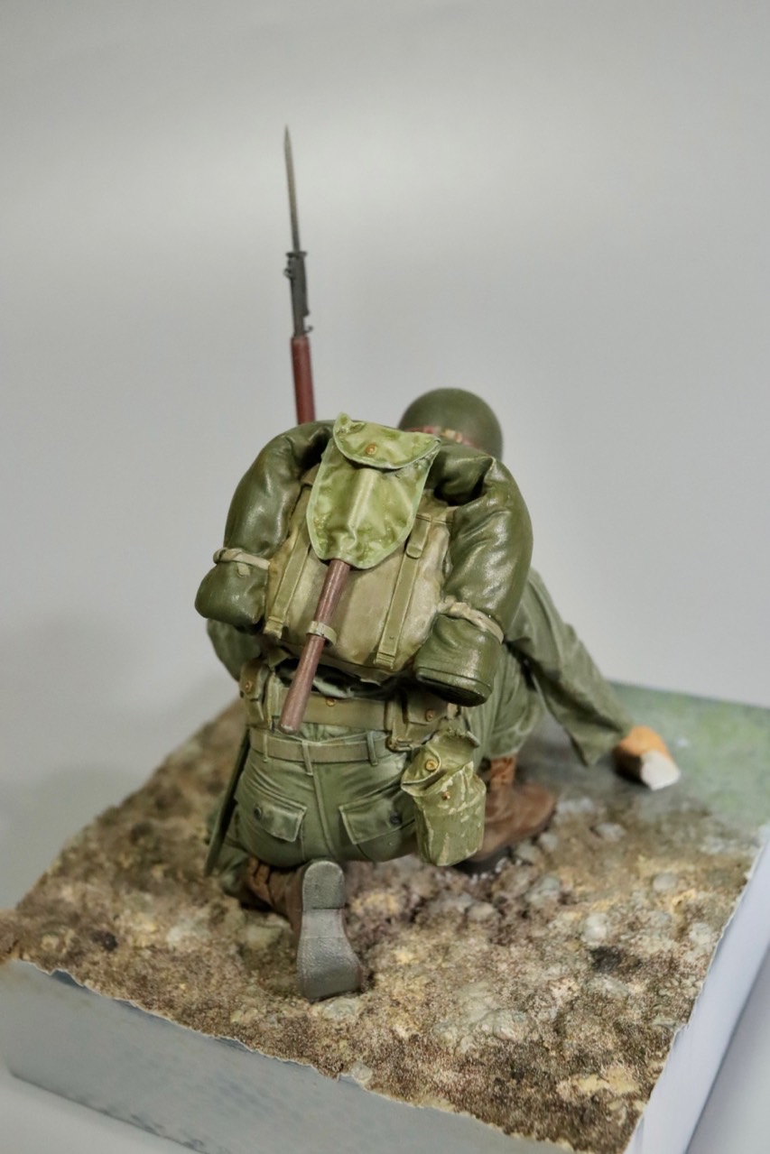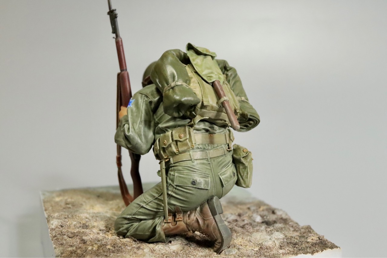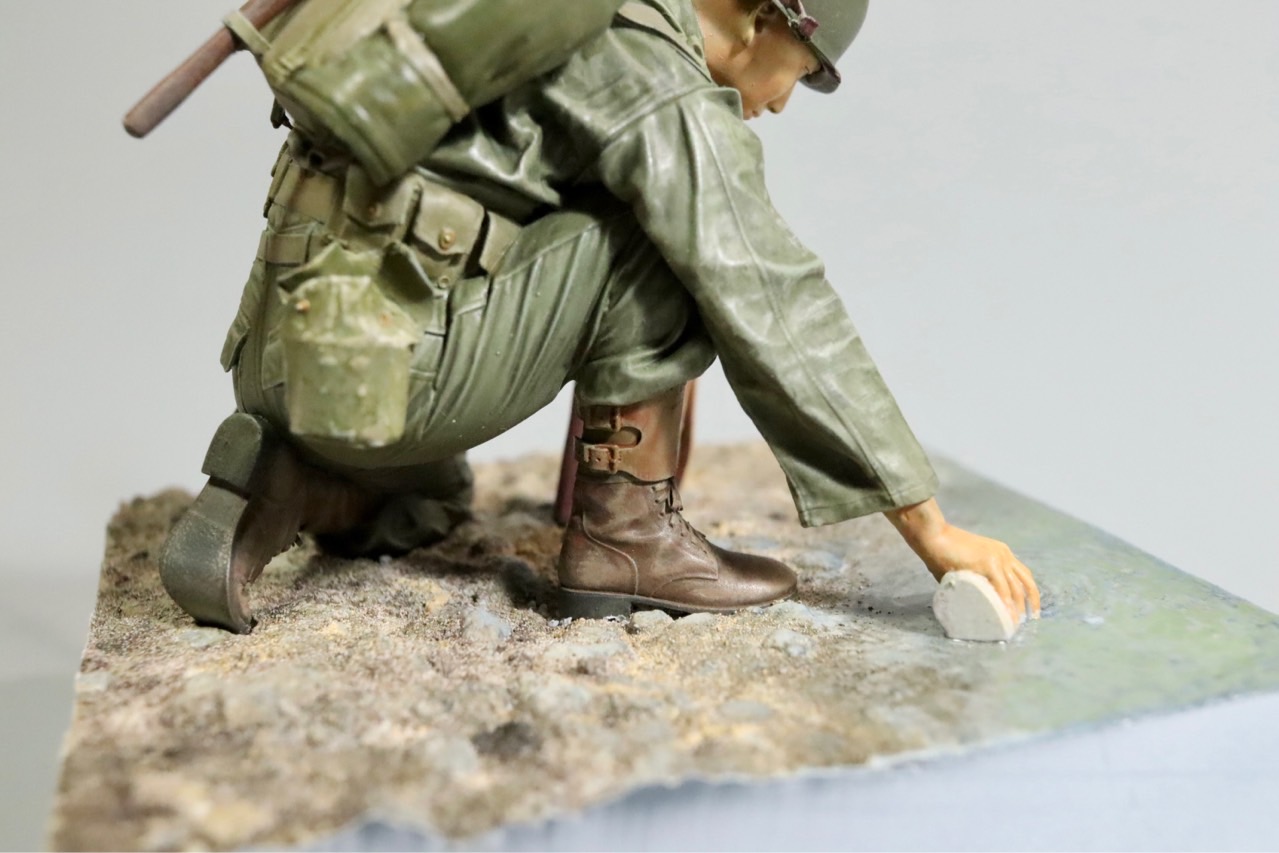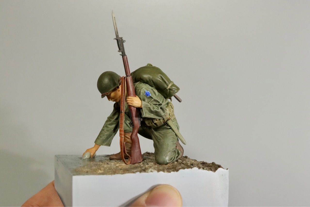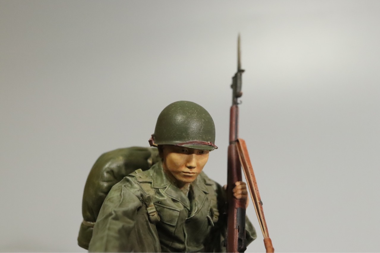 철모에 가려 잘 보이지 않는 얼굴은 작업 중 찍어놓은 사진으로 대신합니다.