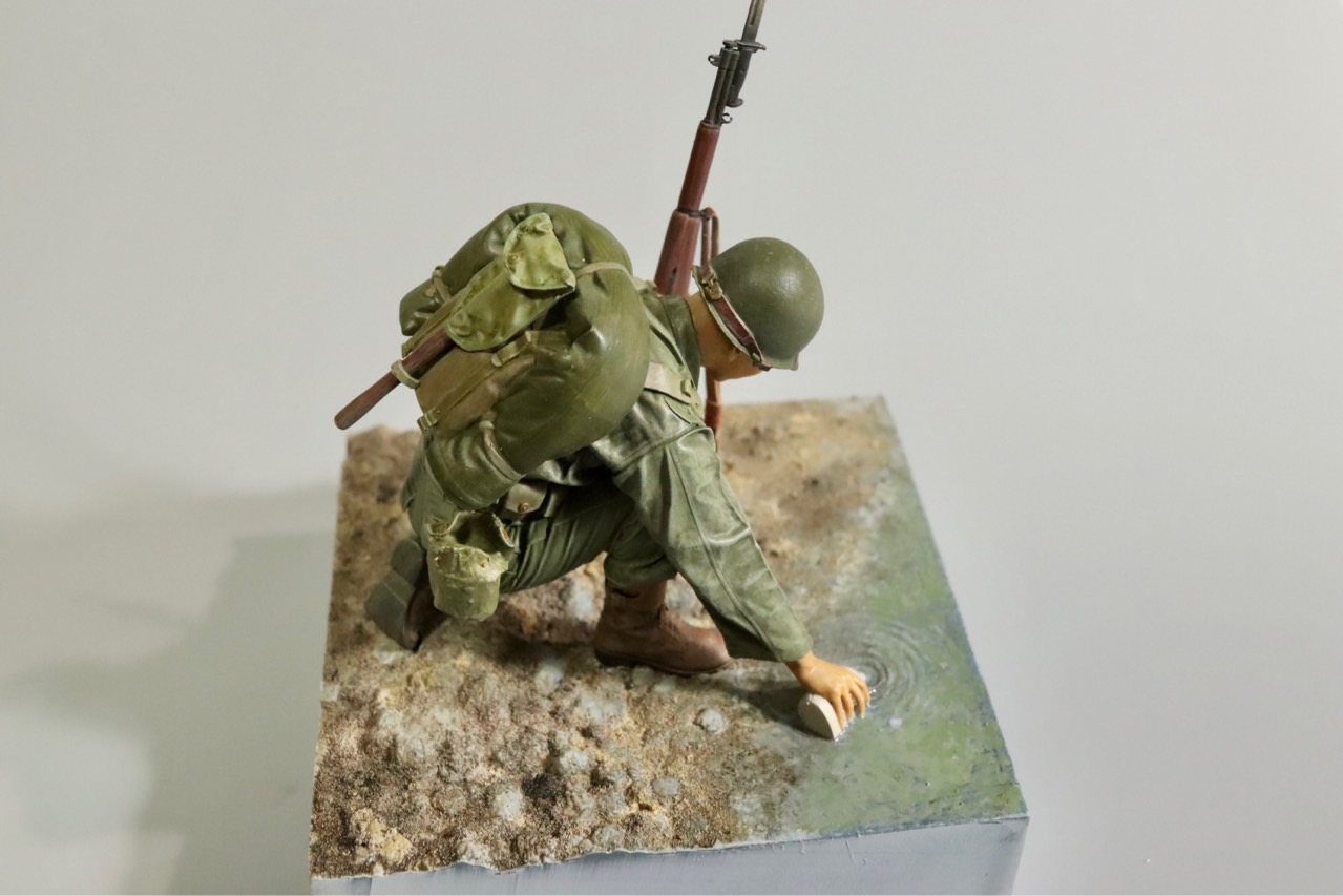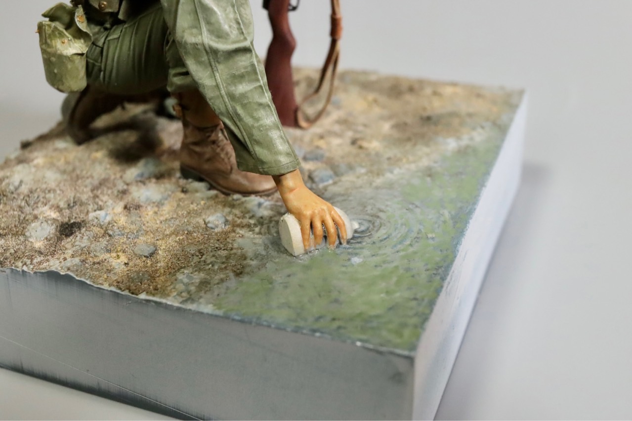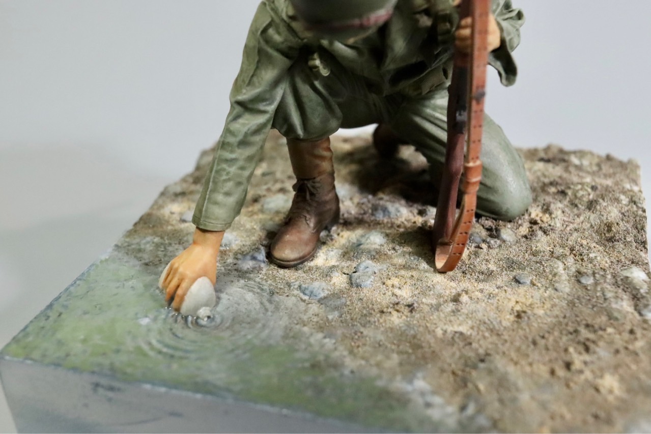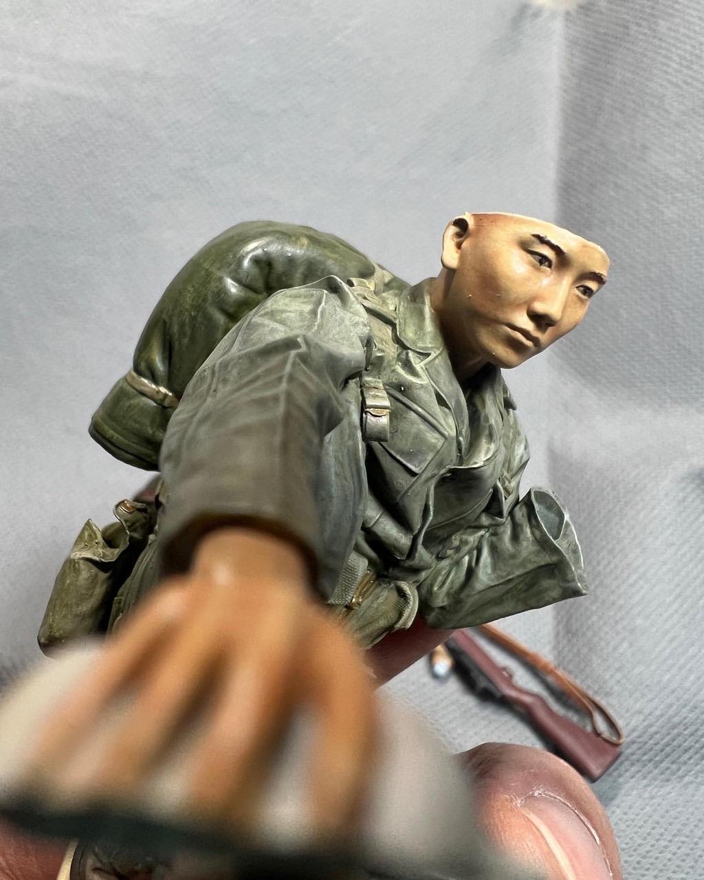 1950년 10월말, 압록강에 진격한 6사단 7연대 어느 병사가 압록강 물을 마시는 장면을 모형화했습니다.