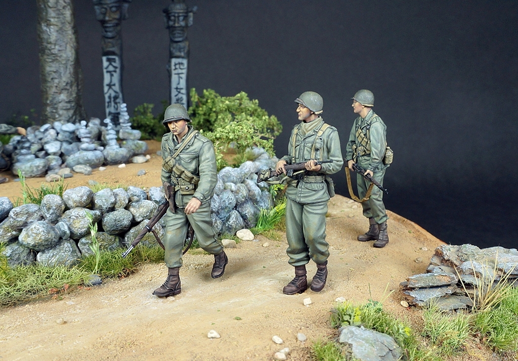 +피규어는 타미야제품과 레진제품을 그대로 또는 헤드만 교체하여 사용했고 돌을 얹고 있는 피규어만 살짝 개조해주었습니다.