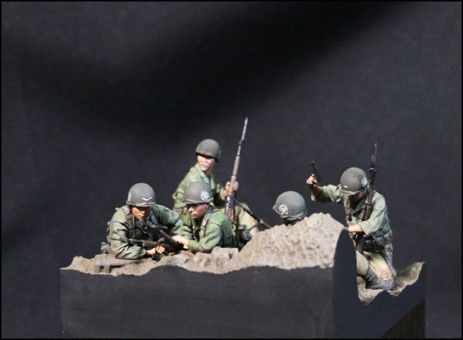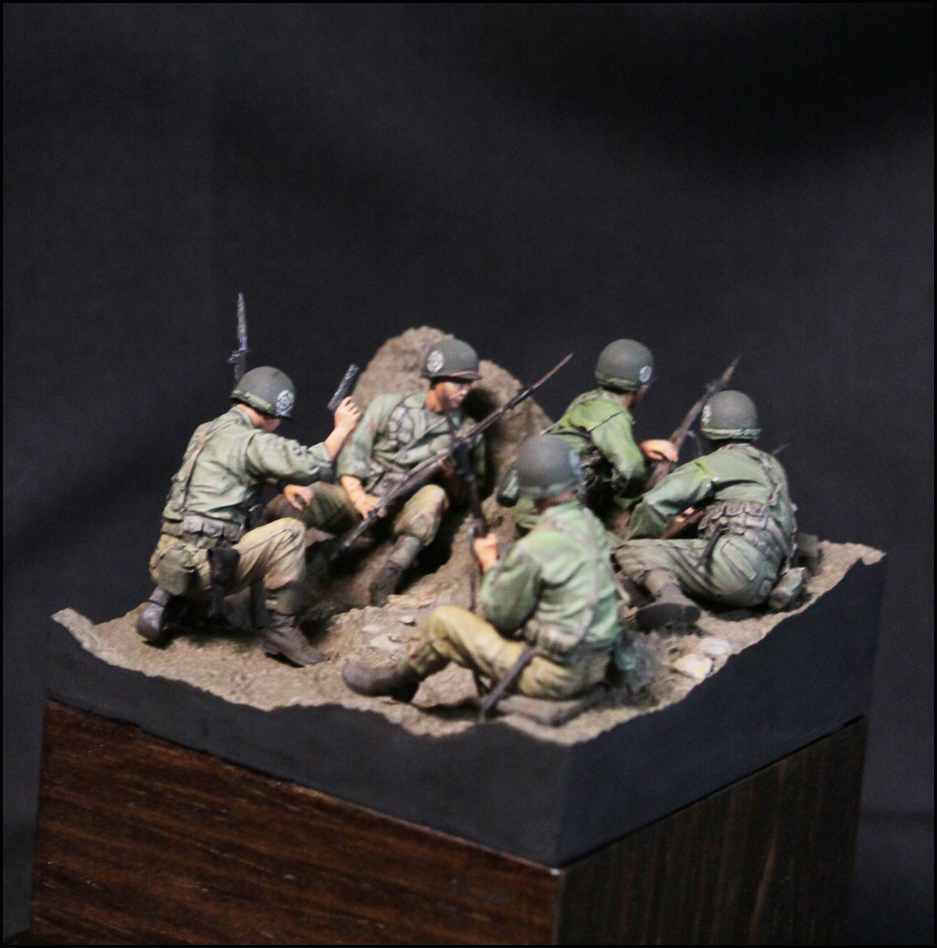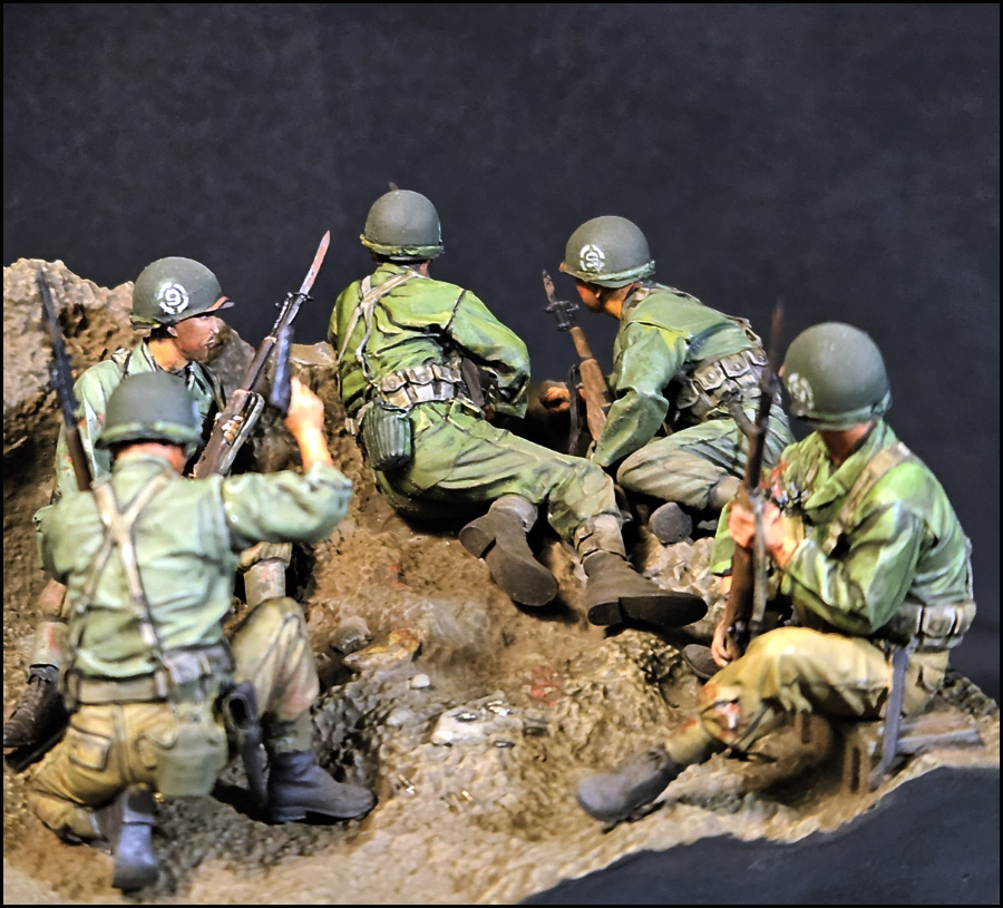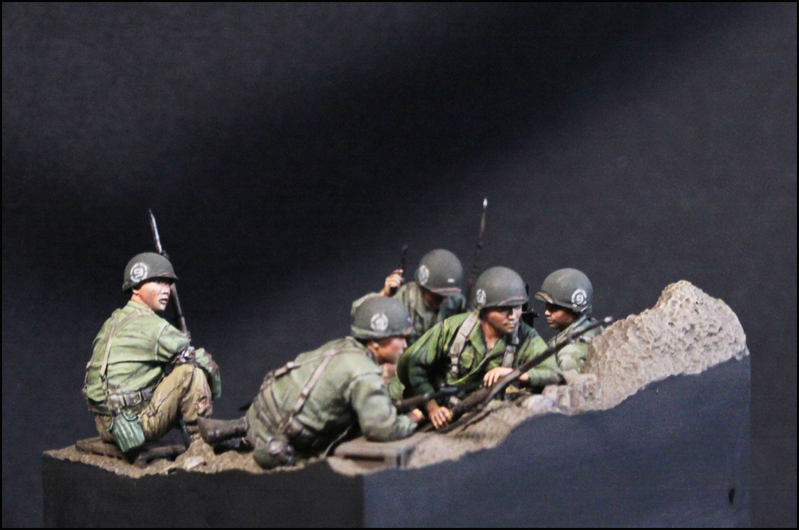 스토리는 제품을 살짝 수정하여, 마지막 돌격 전의 모습입니다. 백마부대의 전투 기록을 보면 2종류의 군복이 확인되는데, 이에 맞춰 5명을 두 부류로 표현했습니다.