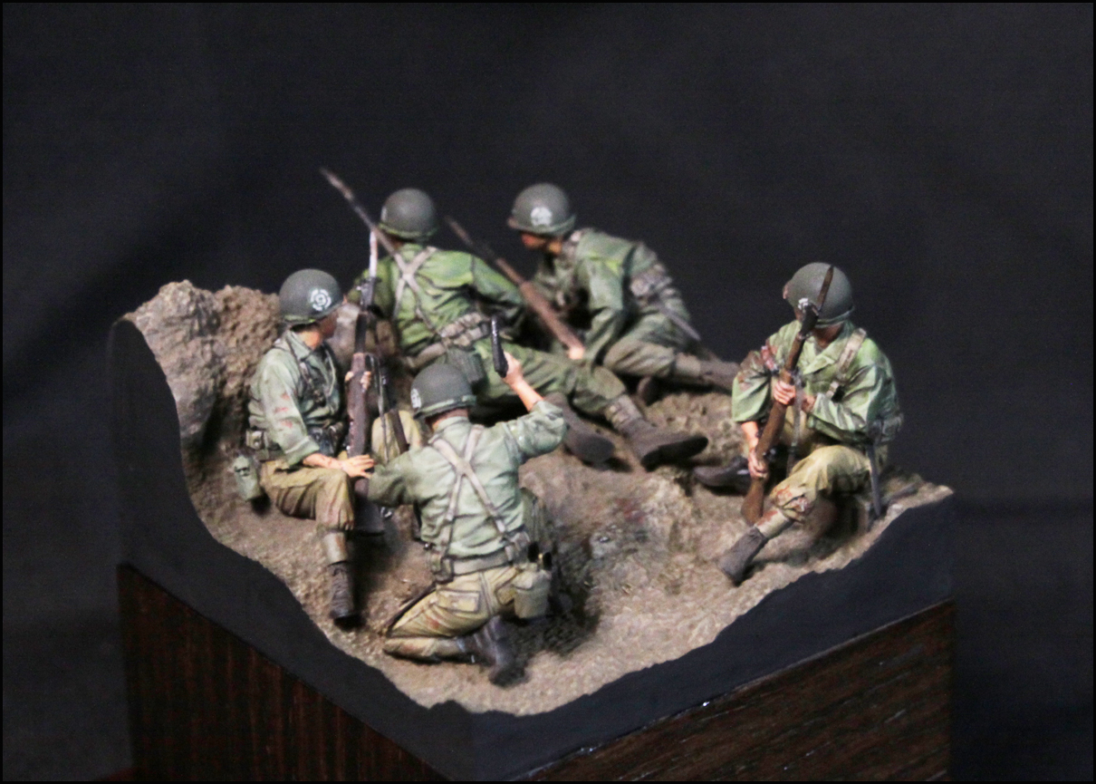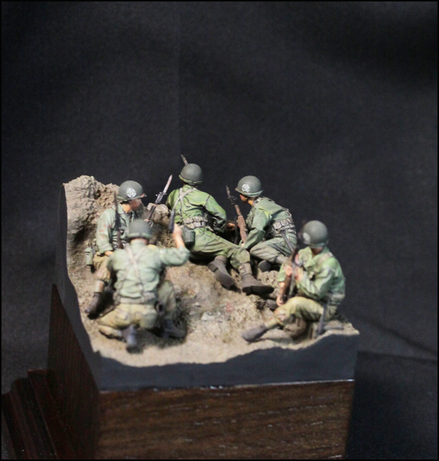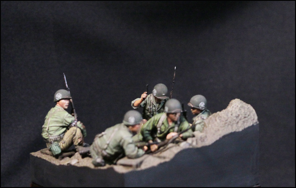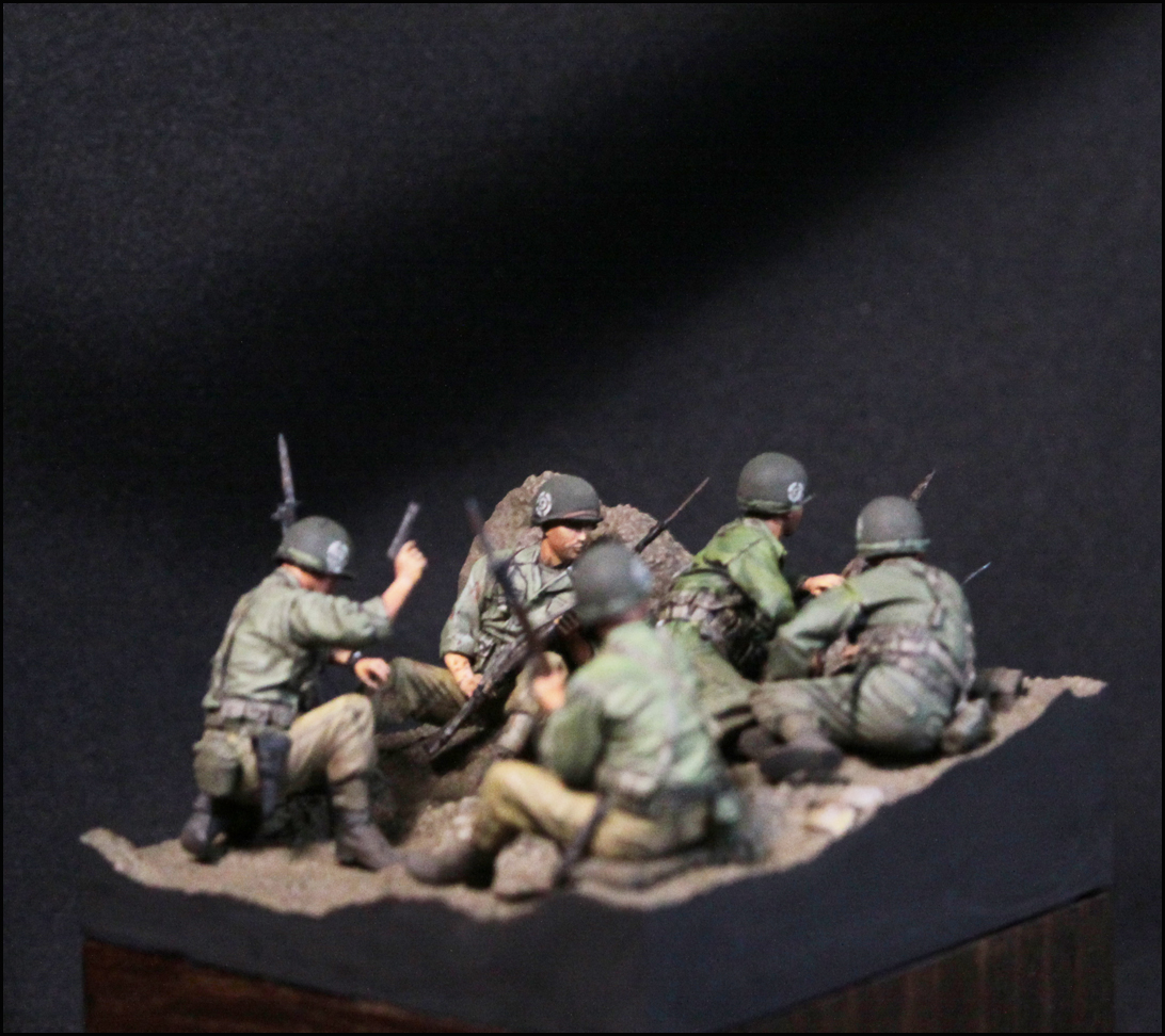 스토리는 제품을 살짝 수정하여, 마지막 돌격 전의 모습입니다. 백마부대의 전투 기록을 보면 2종류의 군복이 확인되는데, 이에 맞춰 5명을 두 부류로 표현했습니다.