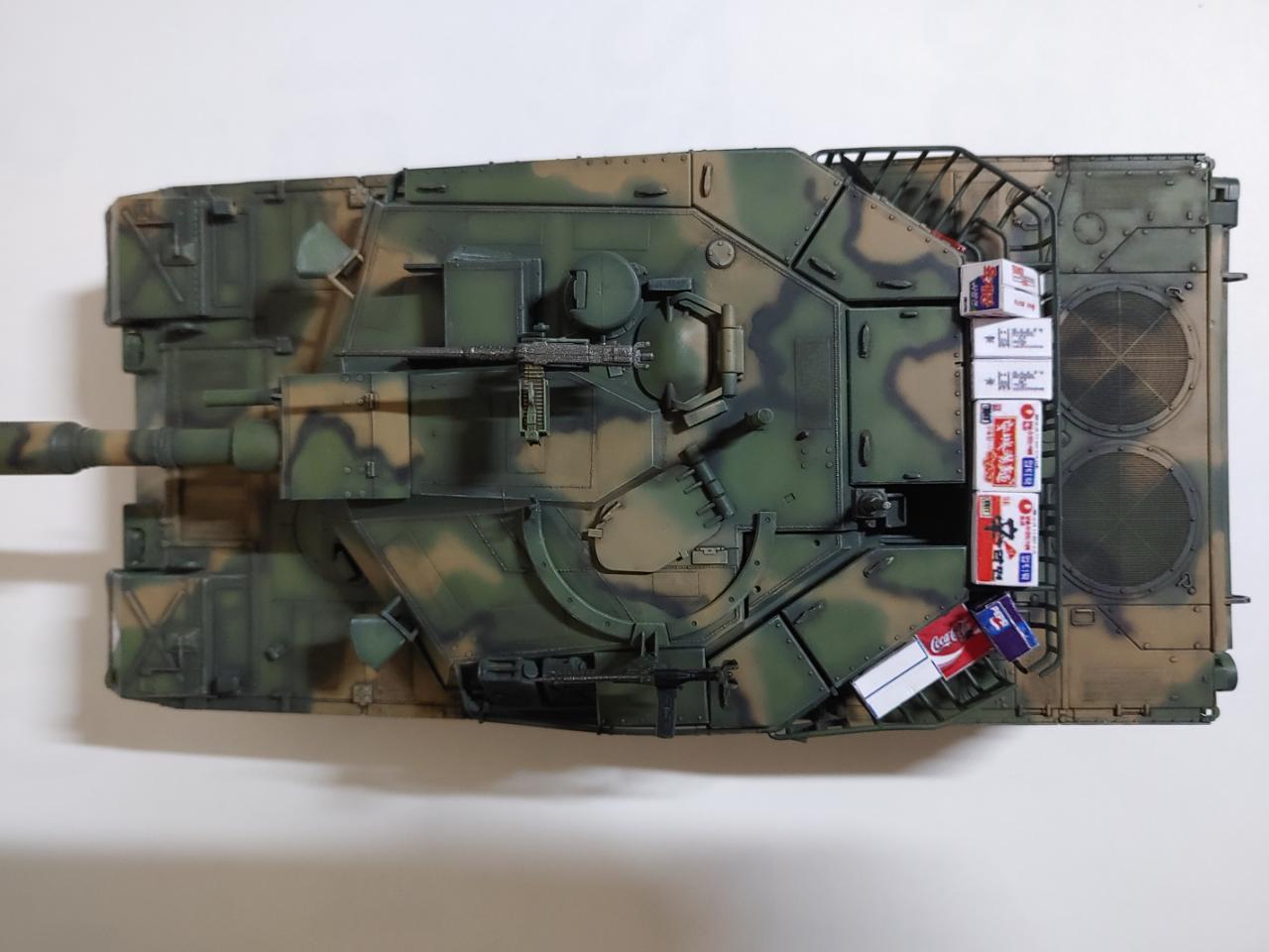 예전에는 아카데미 탱크를 사면 악세사리가 많이 들어있었습니다. 정말 한보따리 남아 도는 것을 다른 탱크 만들때 다 써버려서 바스켓에 태워 줄 악세사리가 전무! 그냥 라면, 건빵 박스 채우는 걸로 만족했습니다.