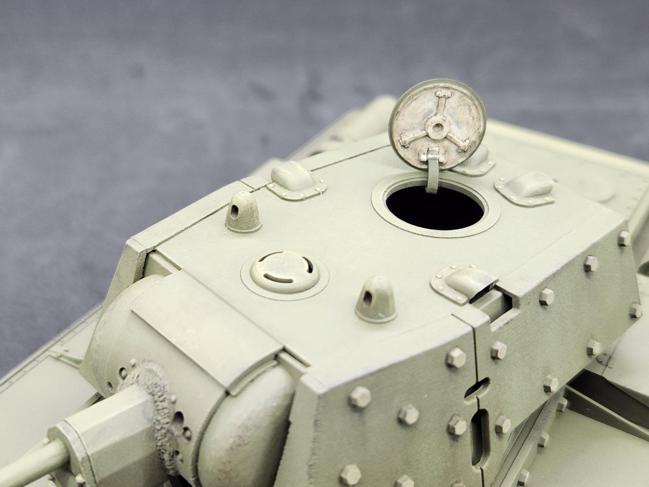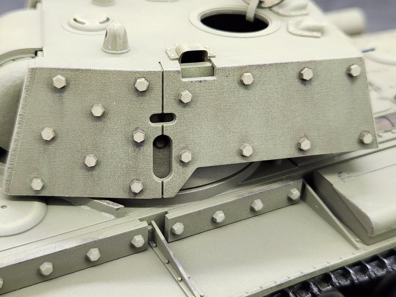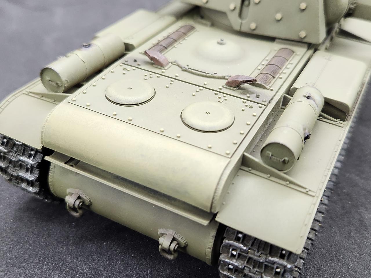 KV-1B 버전의 특징인~ 추가장갑과 그 위에 박힌 나사머리도 작업해주었습니다. 나사머리는 세필로 하이라이팅 해주고, 그 위에 필터링을 해주었습니다.