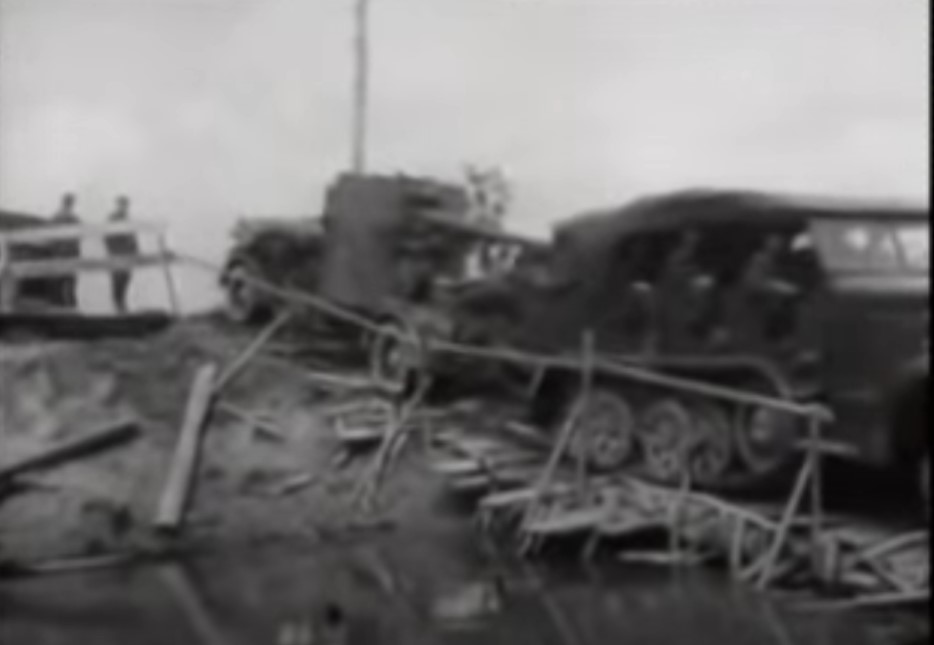 The flak 88mm of the Wehrmacht를 견인하여 도하하는 Sd.kfz.7 Mittlere Zugkaftwagen 8t