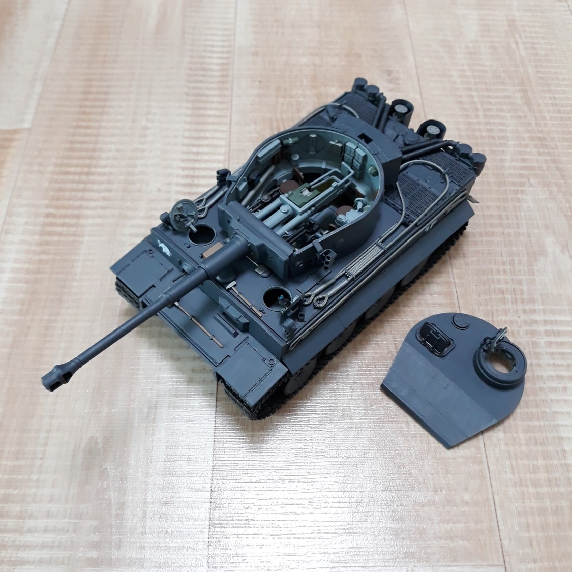 포탑에 있는 탈출해치도 가동할 수 있게 개조했습니다. 엔진덮개 위의 파이프들도 붙여버리면 덮개가 가동이 안됩니다.