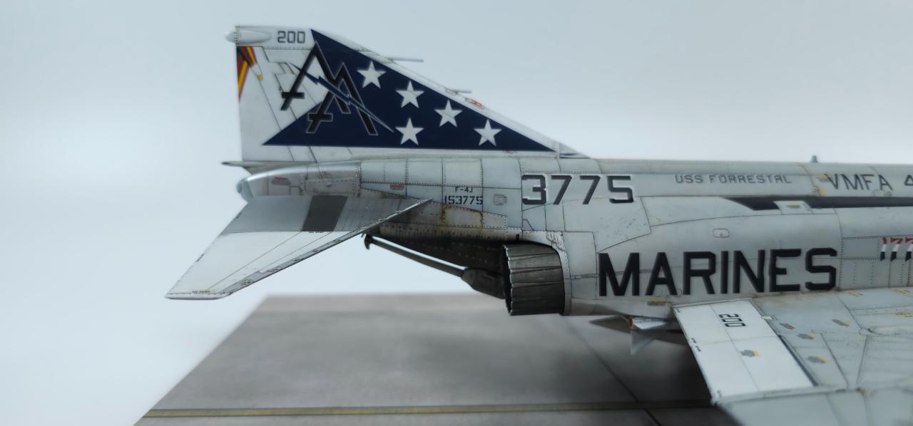 엔진 부위는 많이 신경 쓴 부분입니다. 팬톰 특유의 규칙적이면서 불규칙적인 변색 효과를 주기 위해 기본 도색, 클리어 도료로 색감 변화, 워싱, 유화 등을 통해 변색효과를 줬습니다.