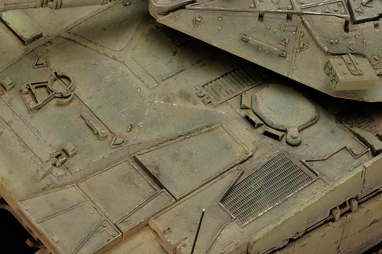 훈련이나 실전경험이 풍부한 이스라엘 전차답게 아크릴 베이스 치핑용액이나 피그먼트등을 사용한 하드한 웨더링을 많이 시도해 보았습니다.
