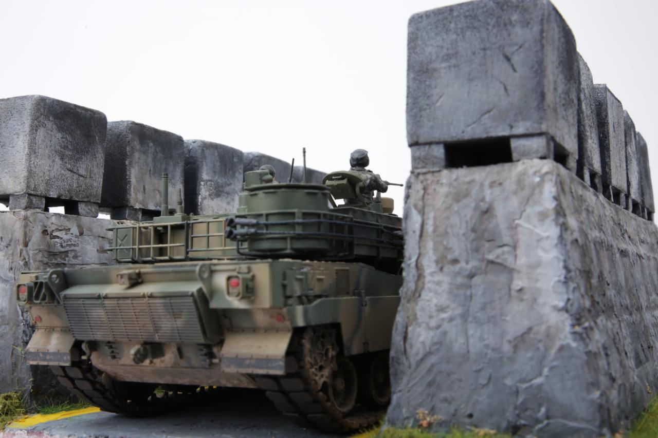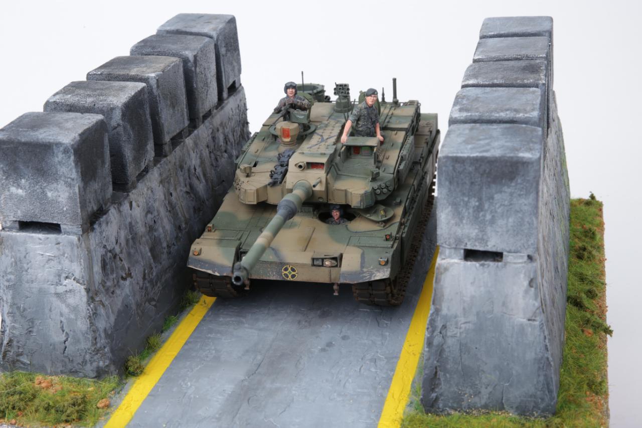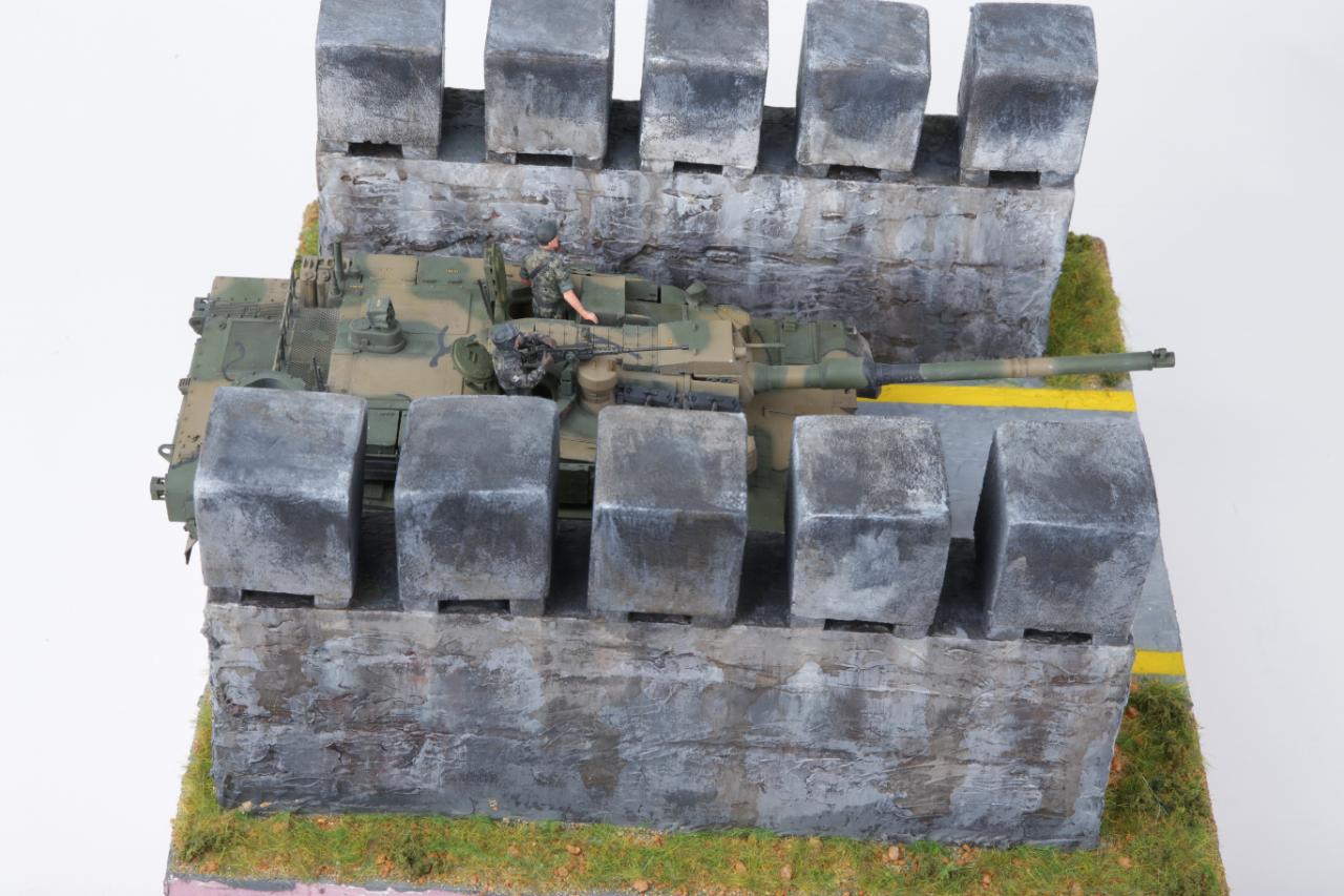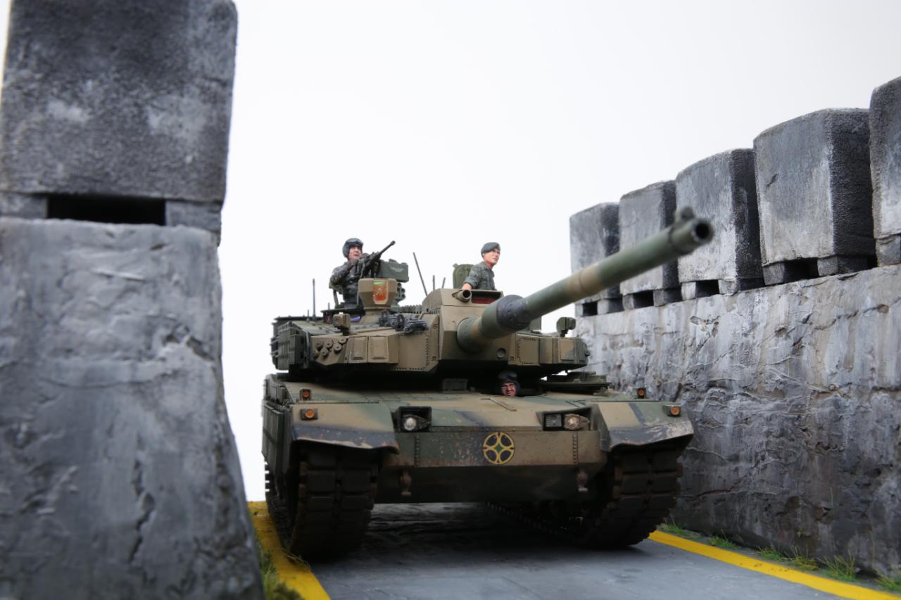 K2흑표전차가 전차방호벽을 지나가는 디오라마를 연출해 봤습니다. 전차방호벽은 교육단에 있는 실물을 보고 만들어봤는데 실제 전차방호벽보다 작은 감이 있습니다. K2승무원들은 아카데미K1과 K9에 있는 승무원들을 약간 변형해서 작업했습니다. 미흡하지만 즐감하세요~