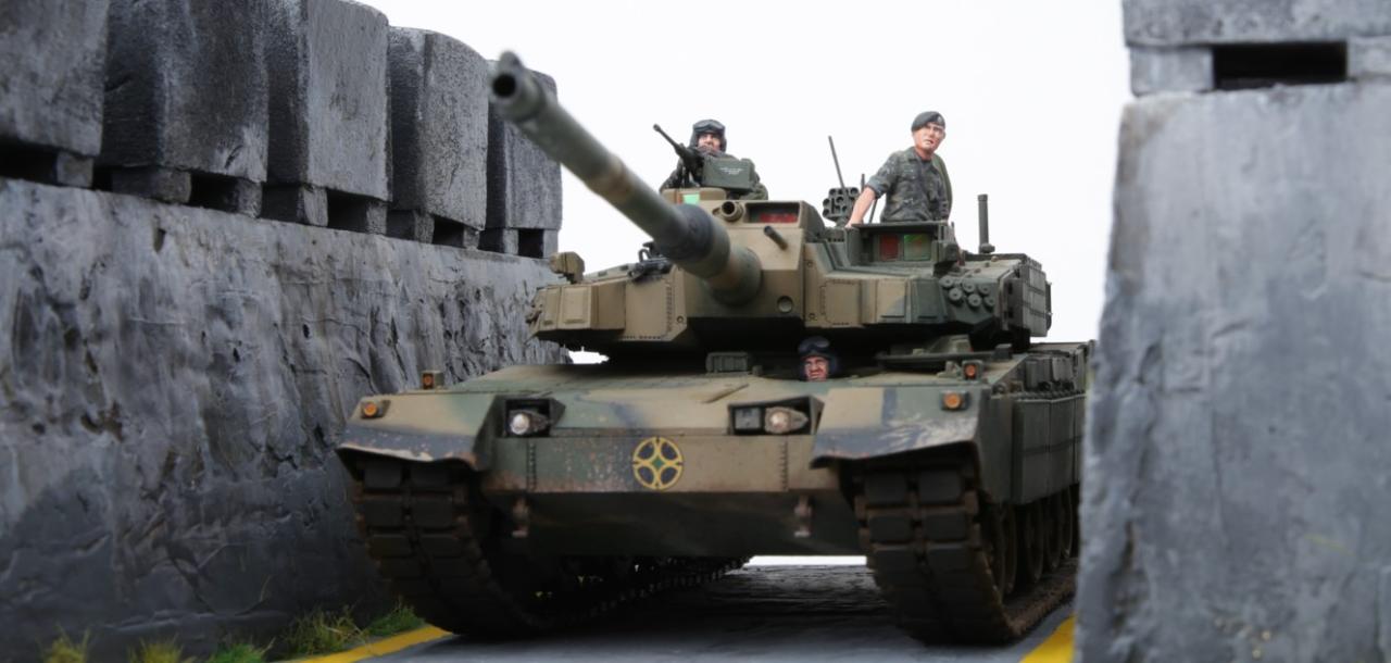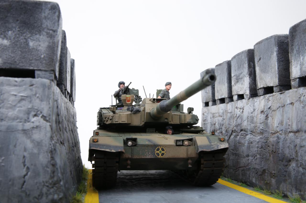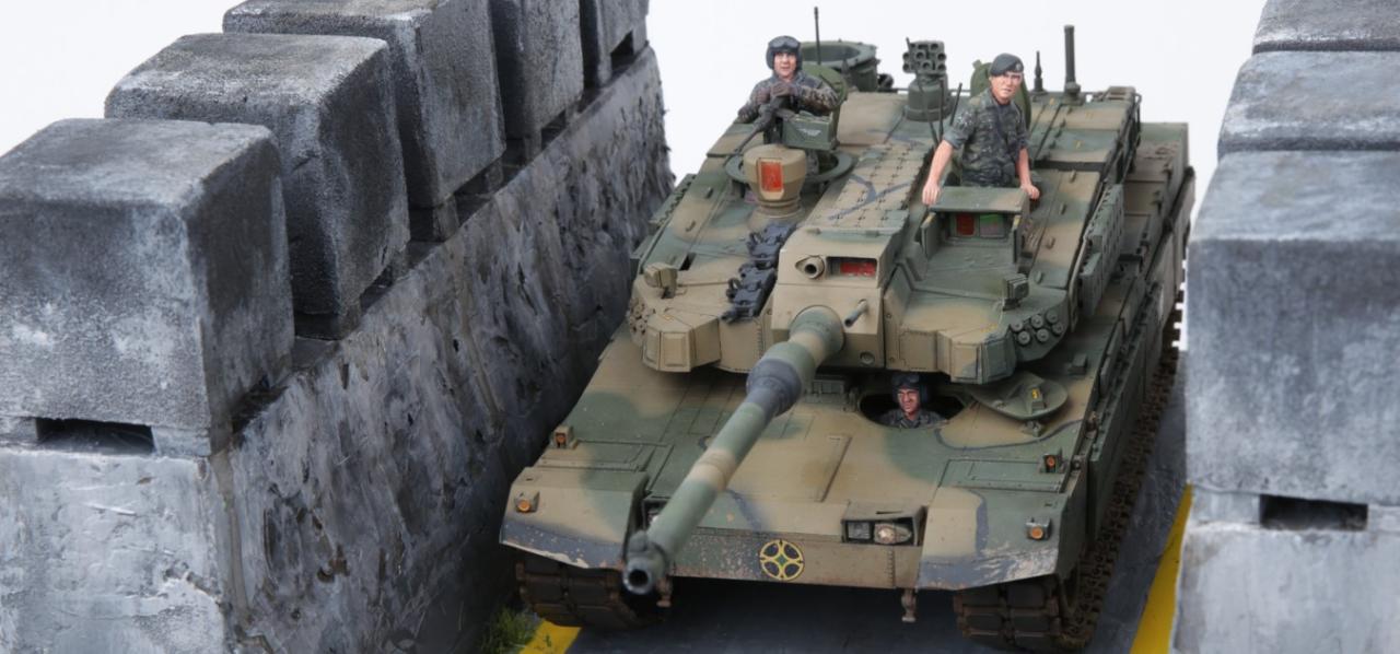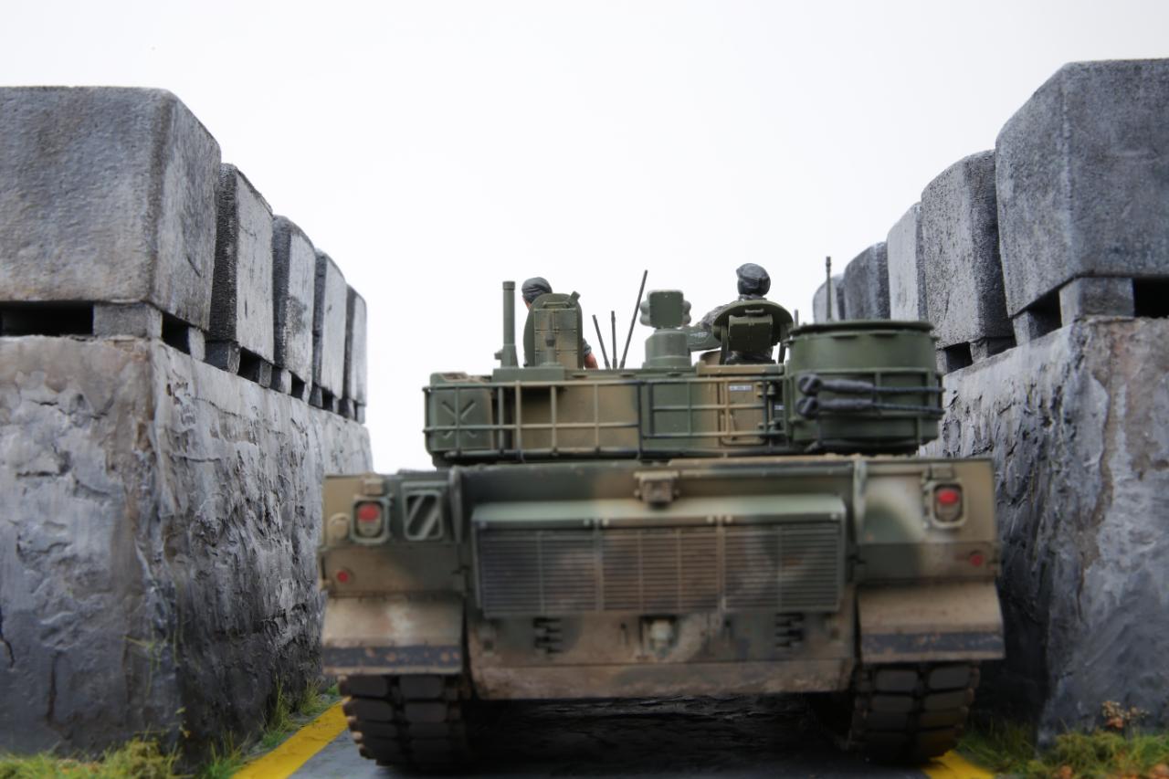 K2흑표전차가 전차방호벽을 지나가는 디오라마를 연출해 봤습니다. 전차방호벽은 교육단에 있는 실물을 보고 만들어봤는데 실제 전차방호벽보다 작은 감이 있습니다. K2승무원들은 아카데미K1과 K9에 있는 승무원들을 약간 변형해서 작업했습니다. 미흡하지만 즐감하세요~