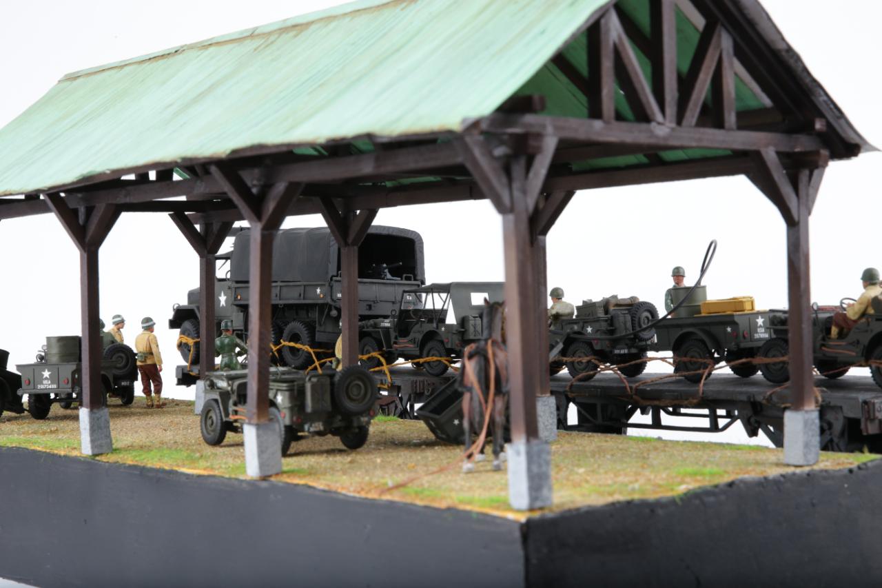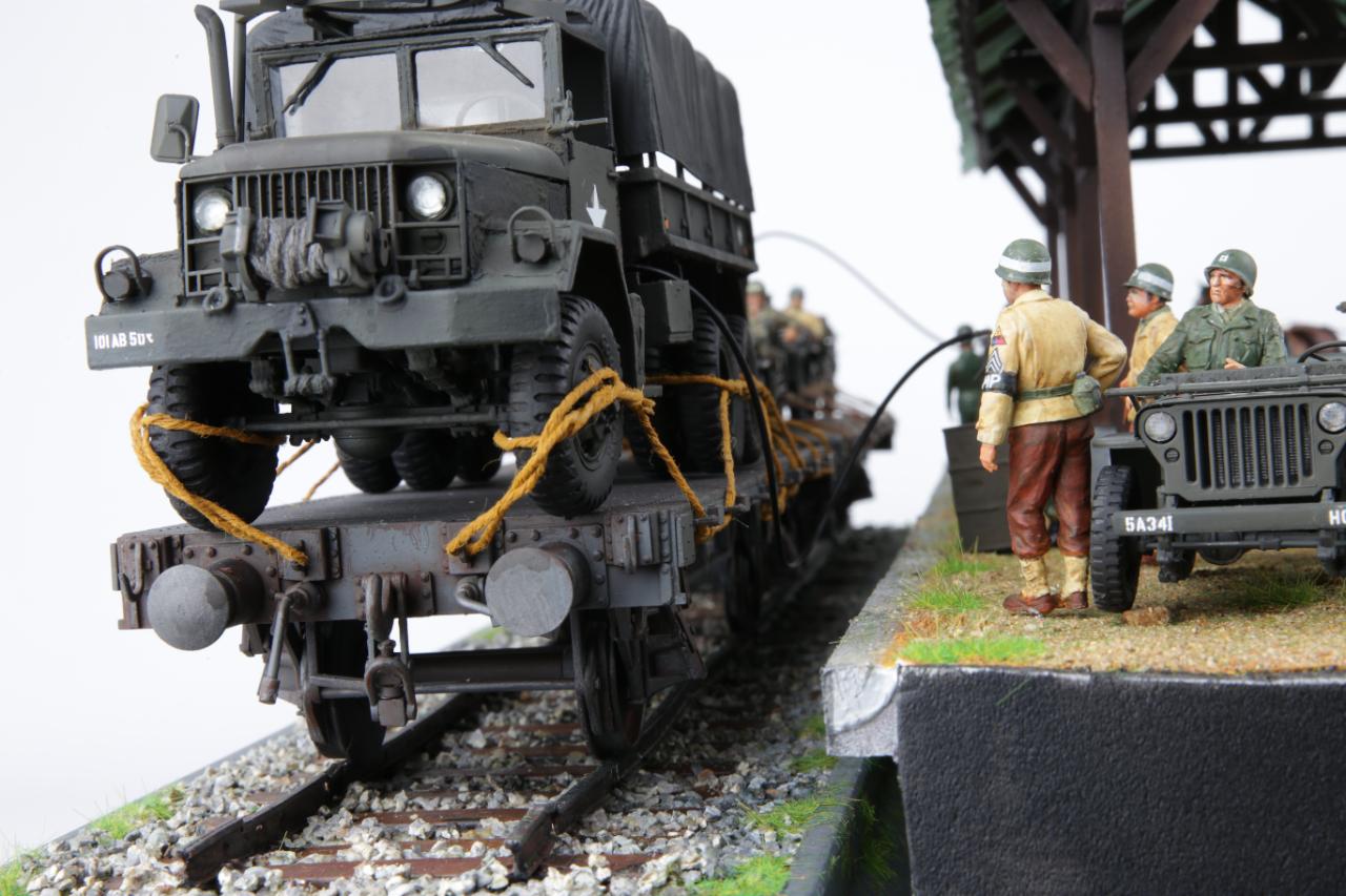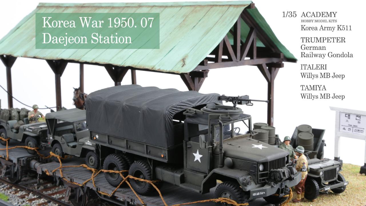 지난번 한국전쟁 시리즈 1탄에 이어 2탄으로 스미스특임부대의 오산이동중 대전역에서 정차하여 보급받는 모습을 연출해 봤습니다. 고증사진과 같이 연출하고자 했는데 실력 부족으로 여기까지 했습니다. 트럭 또한 당시 G508트럭을 사용했어야 하는데 아카데미의 K511트럭 작업한 것이 있어 재 사용하여 연출했습니다. 많이 부족하지만 우리나라의 6.25에 대한 역사적인 사건을 부각시키고 싶어 실력은 부족하지만 열심히 디오라마를 제작해 봤습니다. 처음 하는 작업이라 많이 부족합니다. 다음 작품은 대전역에서 피격된 T-34/85의 디오라마를 시리즈3탄으로 올릴 예정입니다. 많은 응원 부탁드립니다. 감사합니다.