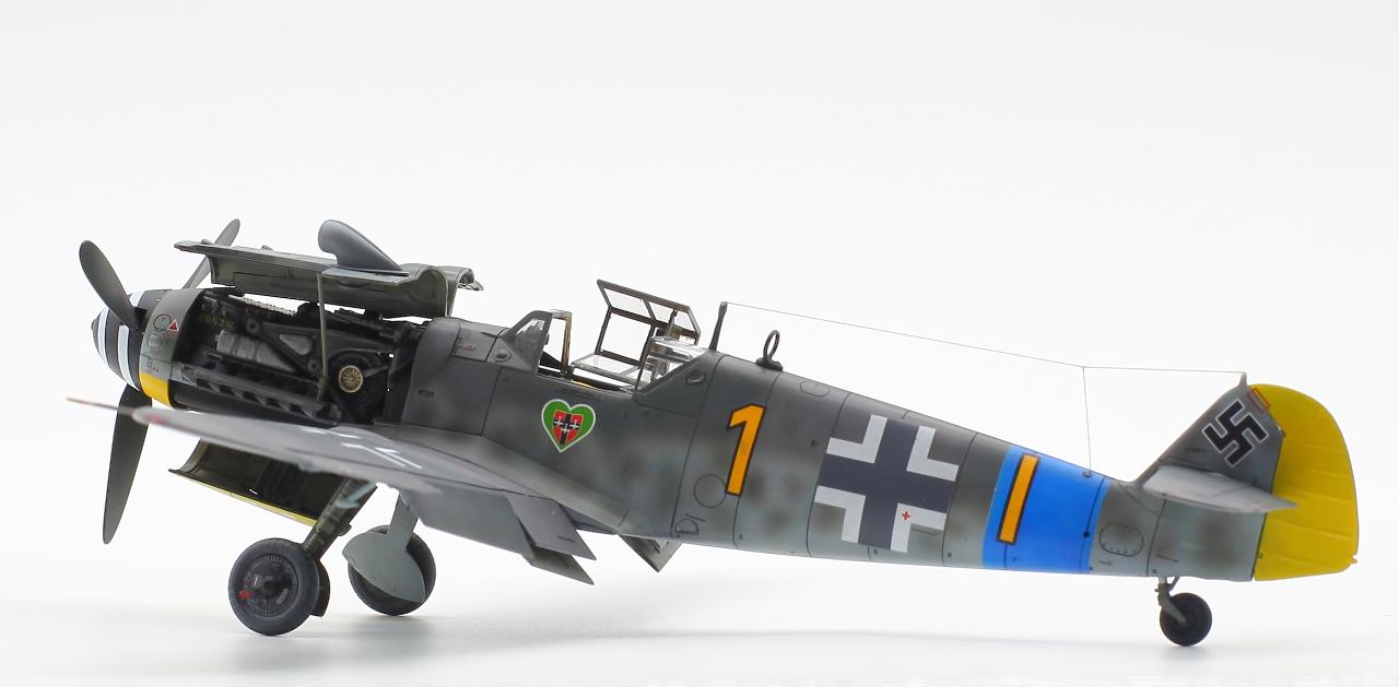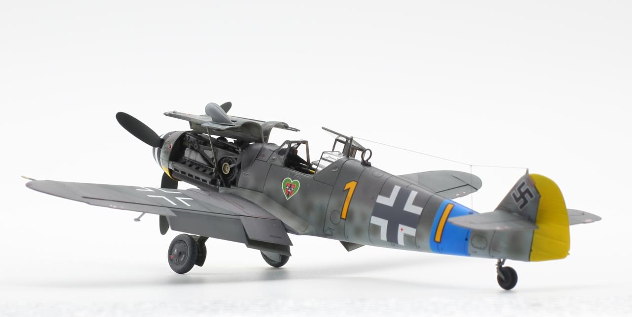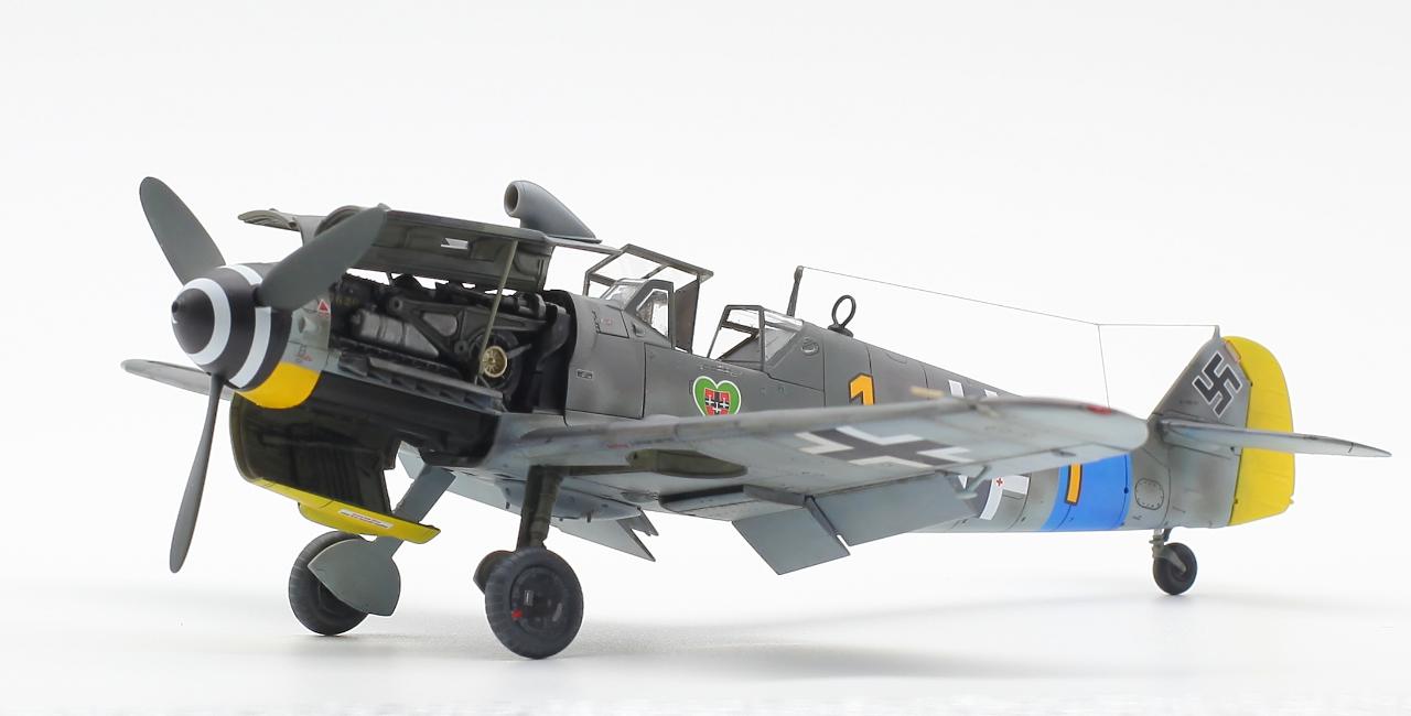 타미야의 Bf109 G-6입니다. 에칭 시트벨트와 안테나선만 추가해 주고, 키트 그대로 만들었습니다. 웨더링은 지저분해질 것 같아서 거의 하지 않았습니다. 엔진이 재현이 되어있고 Upper & Lower Cowling을 연 상태와 닫은 상태로 부품을 바꾸어가며 재현할 수 있게 되어있습니다.
