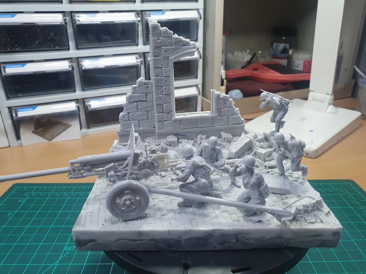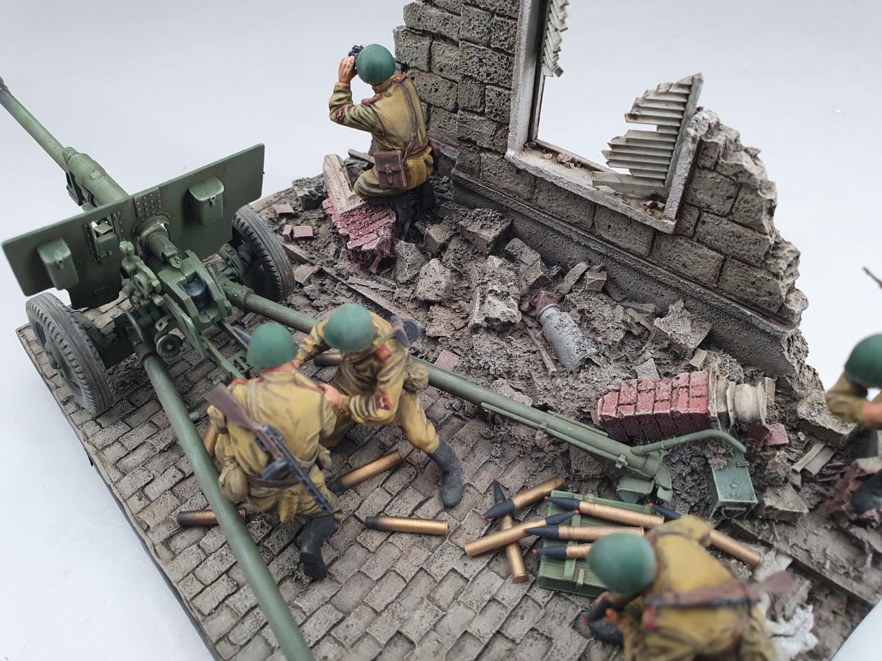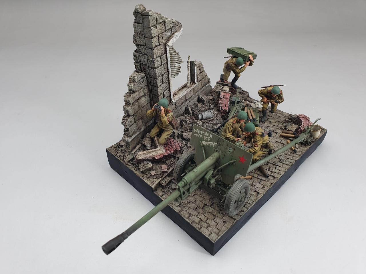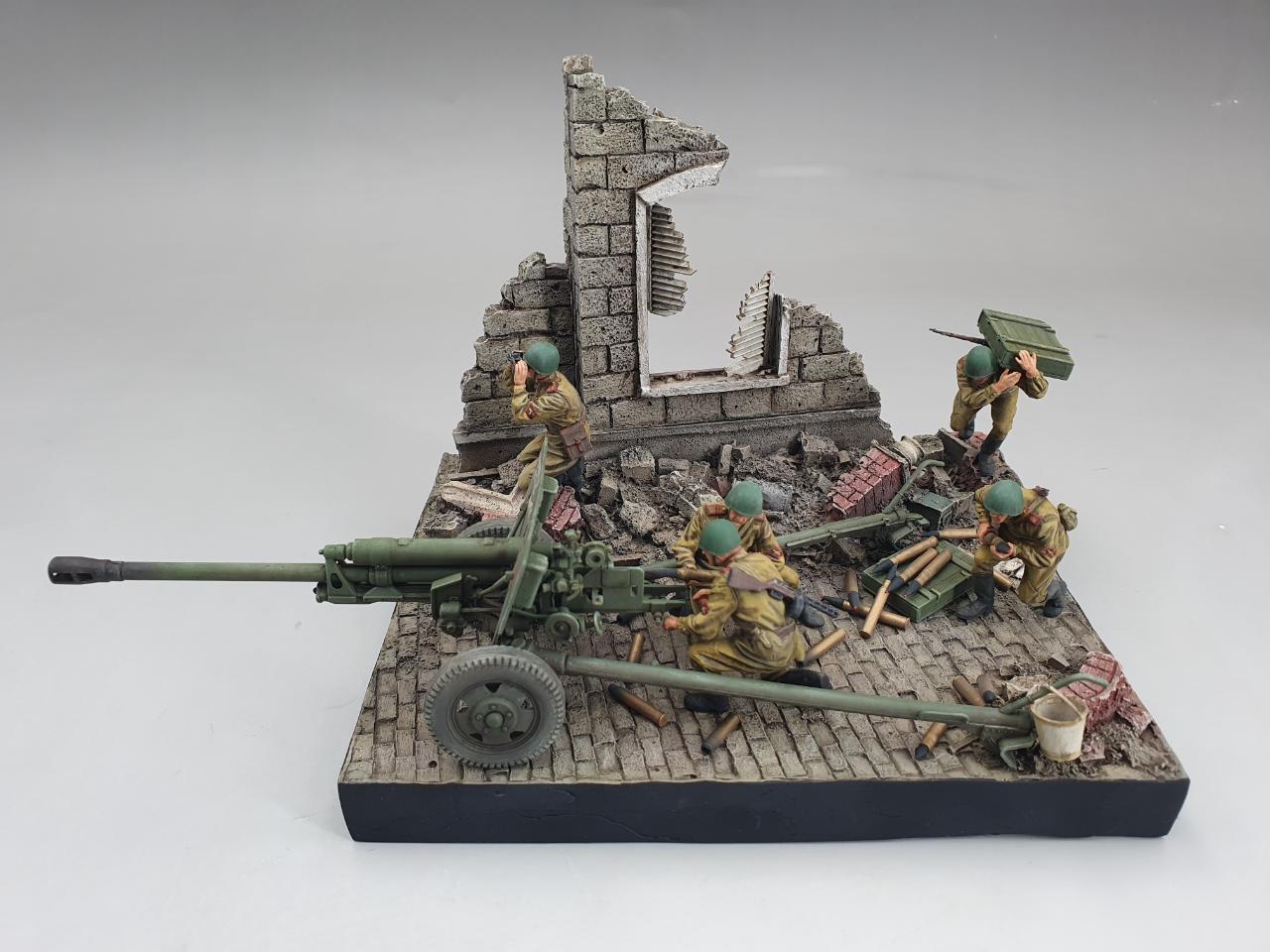 레진폐허 건물과 미니아트 76.2mm포를 가지고 작은 비넷을 만들어 보았습니다!