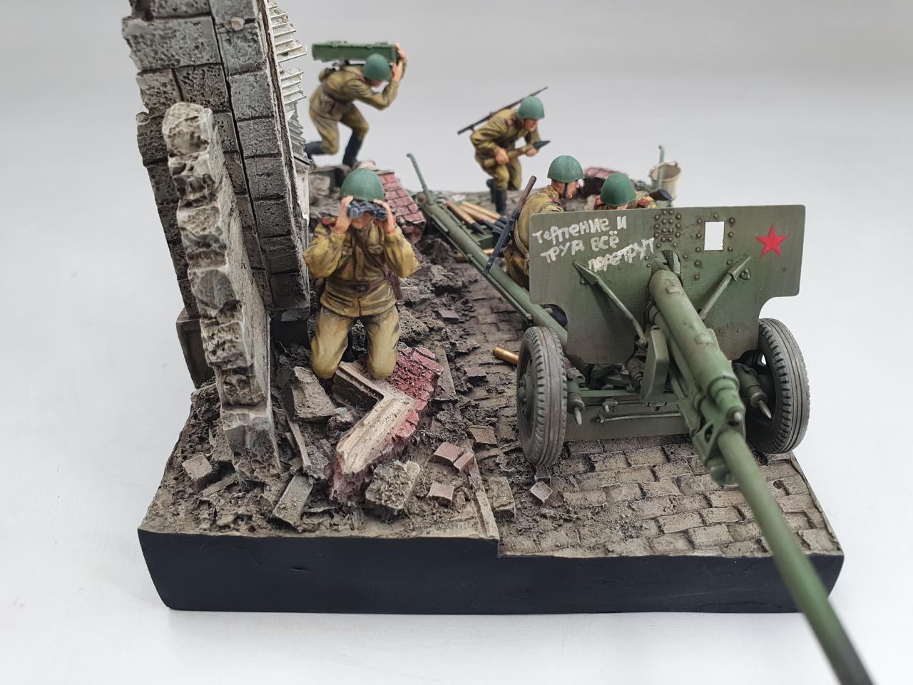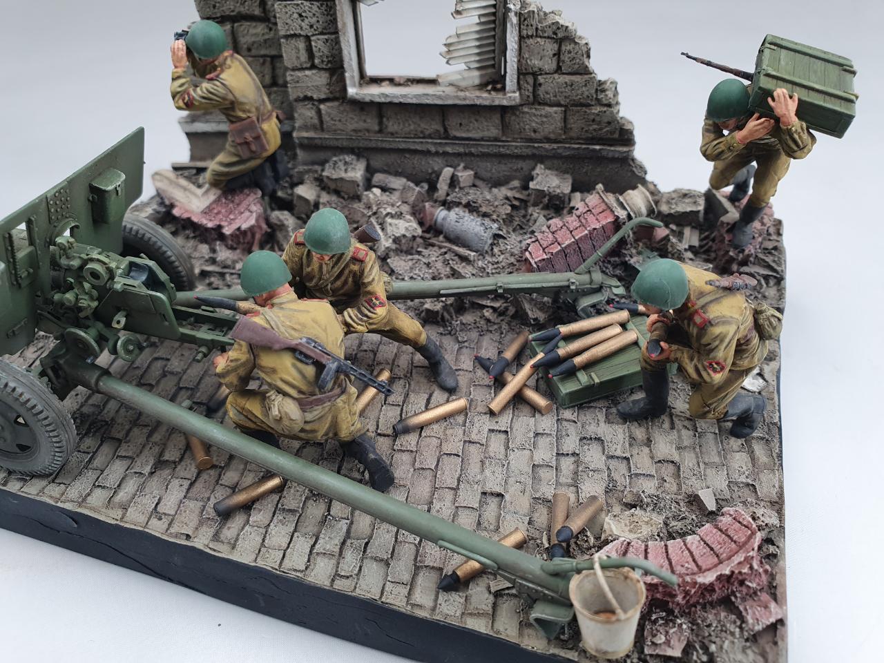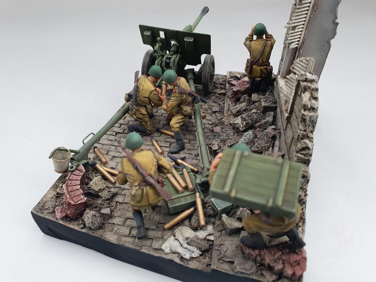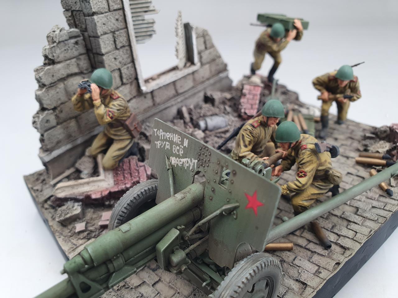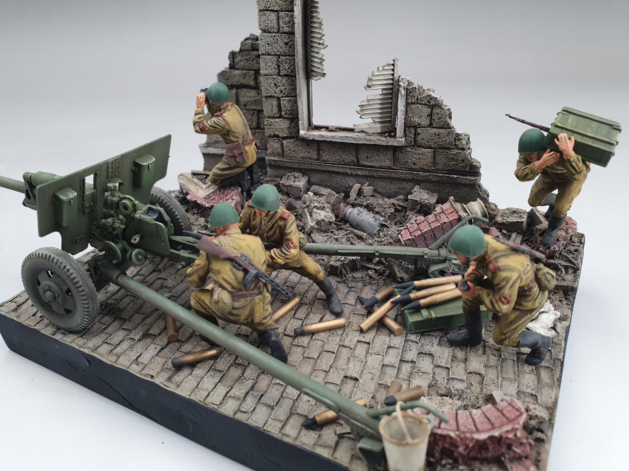 레진폐허 건물과 미니아트 76.2mm포를 가지고 작은 비넷을 만들어 보았습니다!