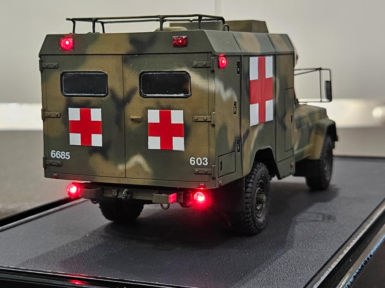 산뜻한 적십자와 점멸하는 경광등이 군용차의 칙칙함에 한줄기 빛이 되어주고 있습니다.