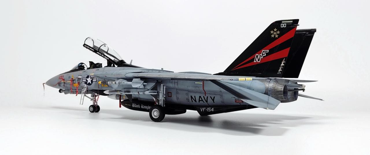1/48 타미야 F-14A 톰캣입니다. MMZ의 많은 작례들을 참고하며 제작하였습니다. 마킹은 VF-154 창설 50주년 기념도장이며 해당 기종은 96년 서울에어쇼에도 참가한걸로 알고 있습니다.