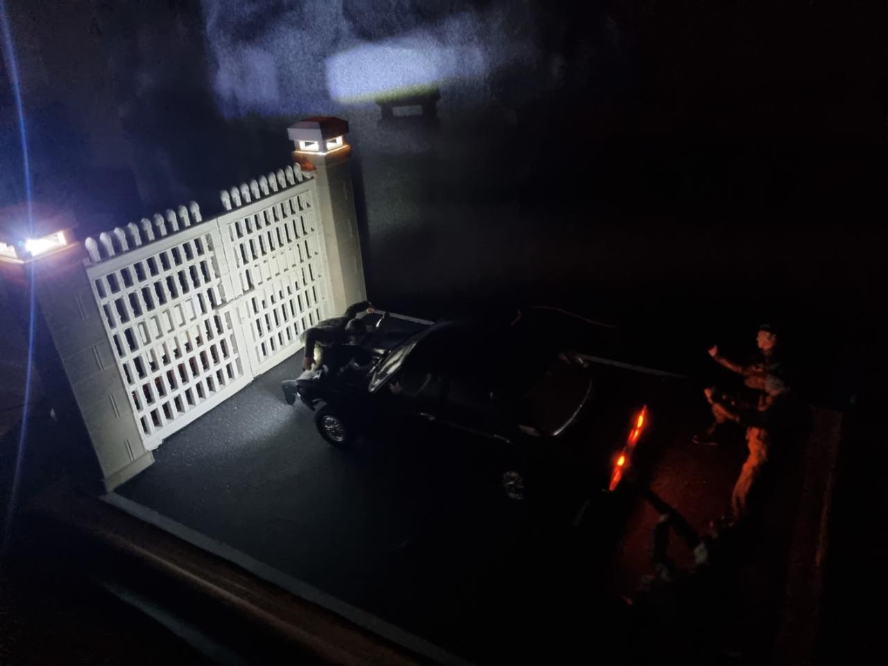불을 다 끄고 차량과 대문의 LED만 켜서 분위기를 조성해봤습니다.