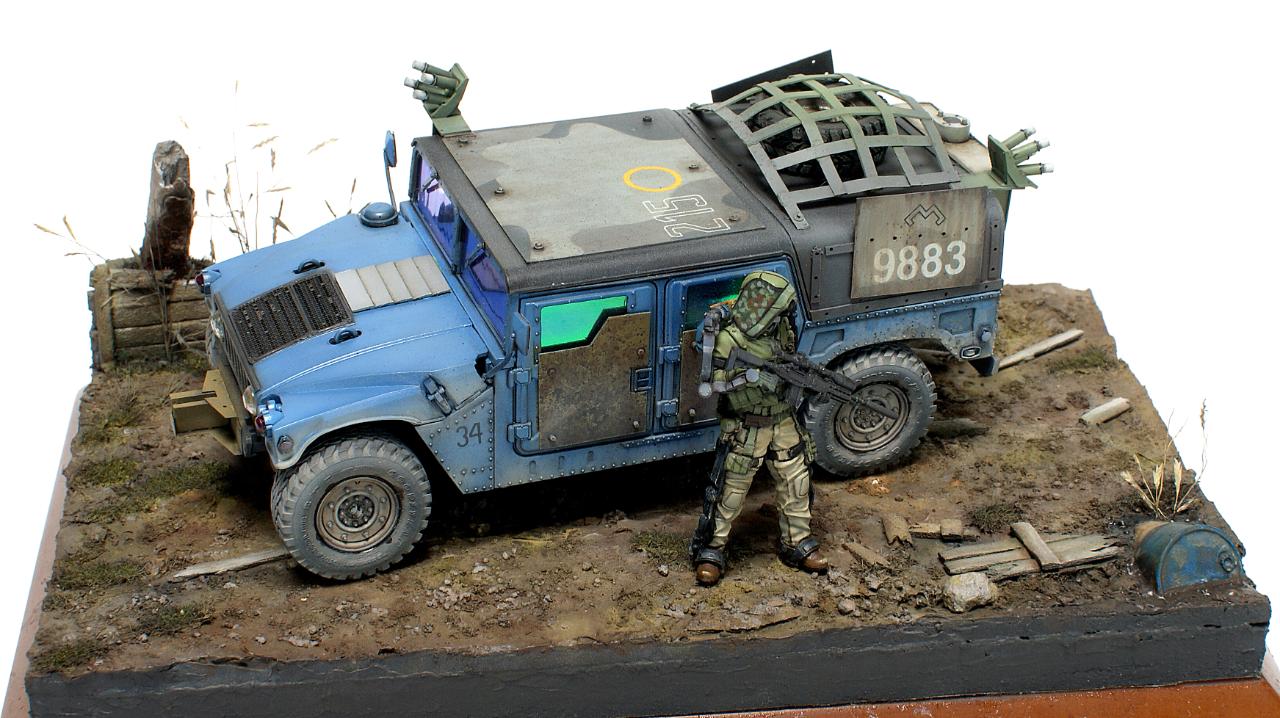 안녕하세요, '내맘대로-SF버젼' 두번째 HUMMVEE(아카데미 1/35)입니다. AFV 장르에서는 거의 사용하지 않는 원색의 파란색으로 기본 도색을 시도해 봤습니다. 뭔가 색다른 느낌으로 만들어 보려고 지난번 노란색에 이어 파란색으로 만들었습니다. 사실 파란색 물감 소비를 위한 목적도 살~짝 있었습니다 ㅎㅎ