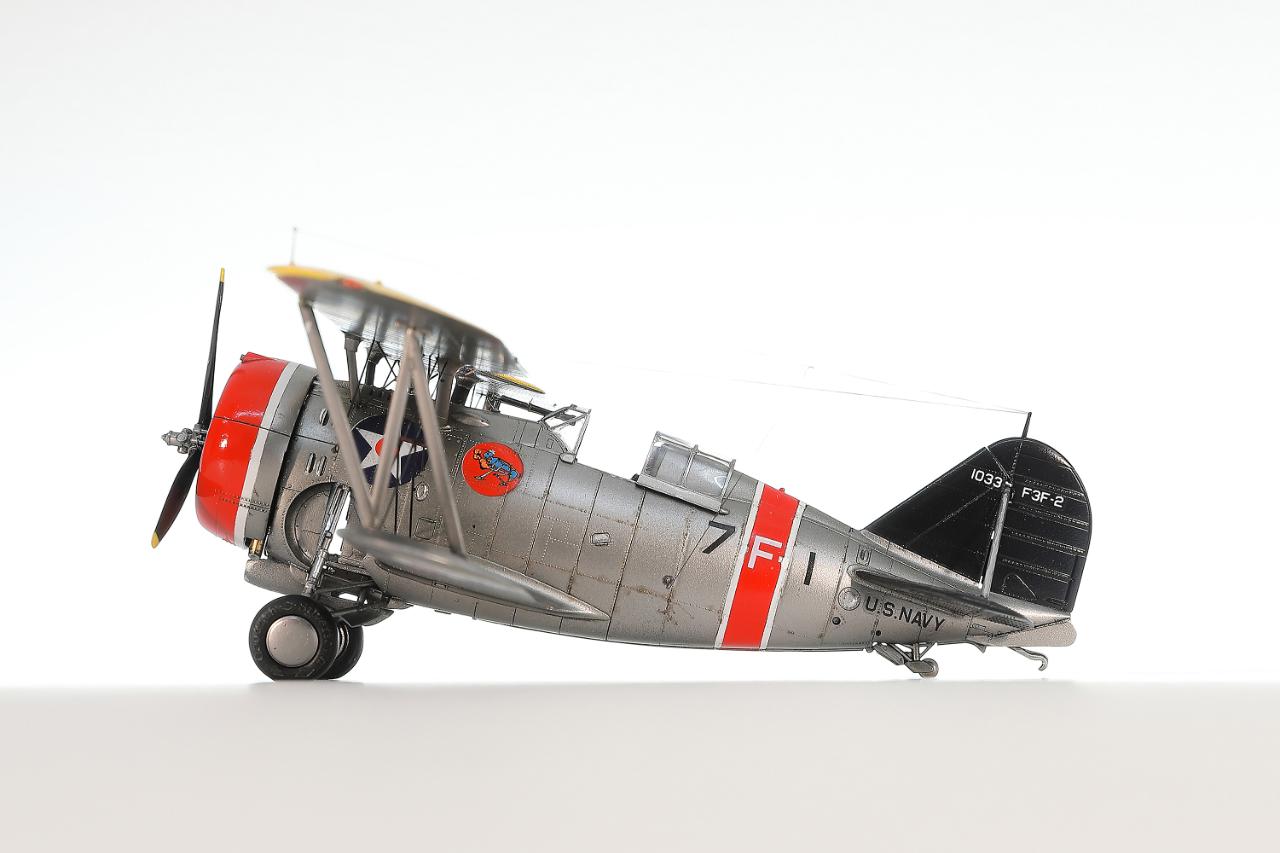 작고 통통한 비율에 화려한 마킹을 가진 아카데미 F3F-2 입니다. 복엽기이지만 후속기체인 와일드캣 모습이 여러부분에 보입니다. 기본 도장이 너무 (?) 화려해서 블루톤을 조정해서 도색했습니다. 키트는 애큐리트미니어쳐 금형이라 조립성이 좋은 반면 리깅도 까다롭고 마스킹도 많이 필요해서 즐겁게 힘들었습니다. 다들 즐거운 모형생활 되세요!