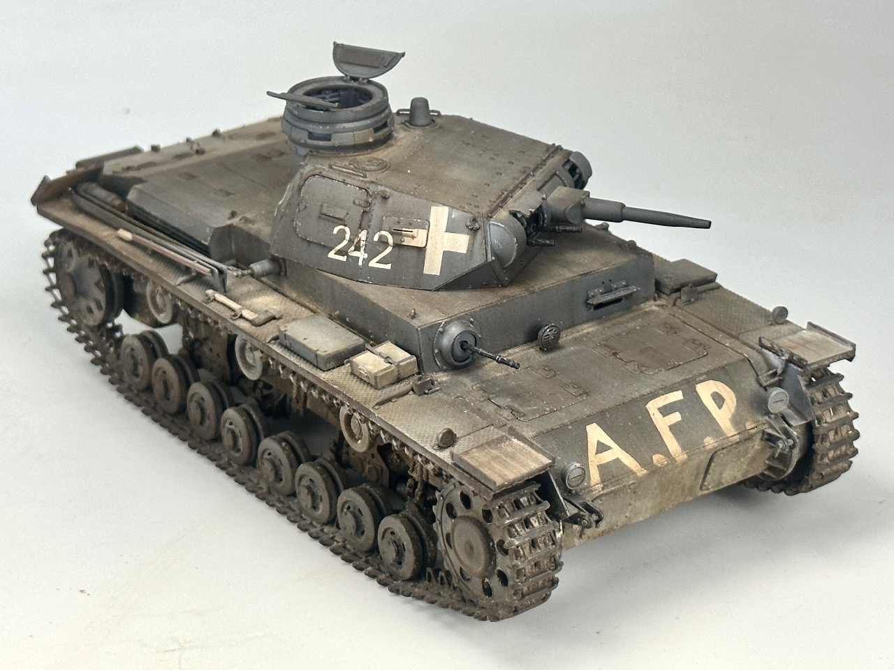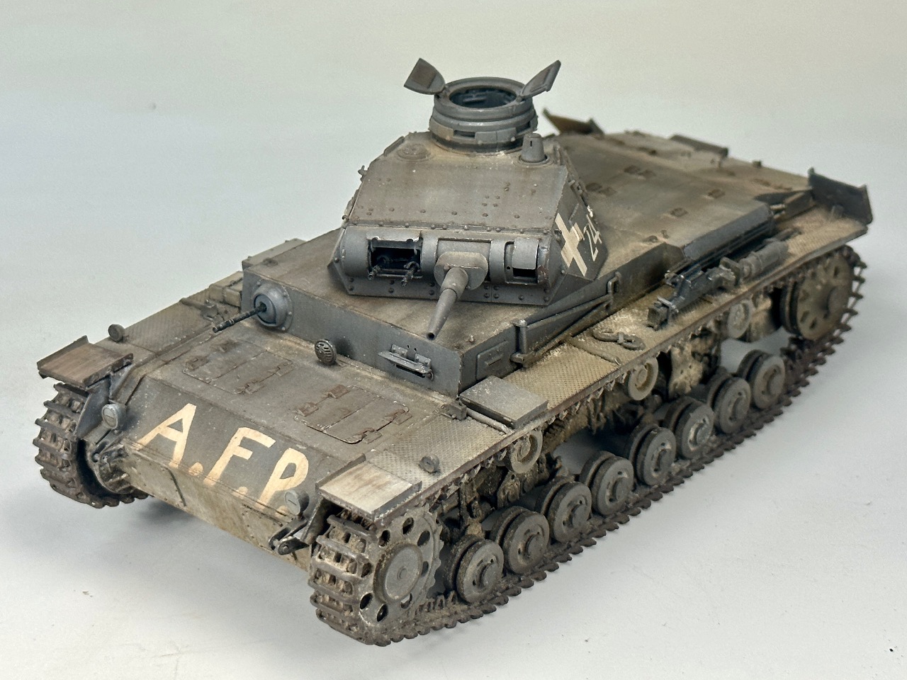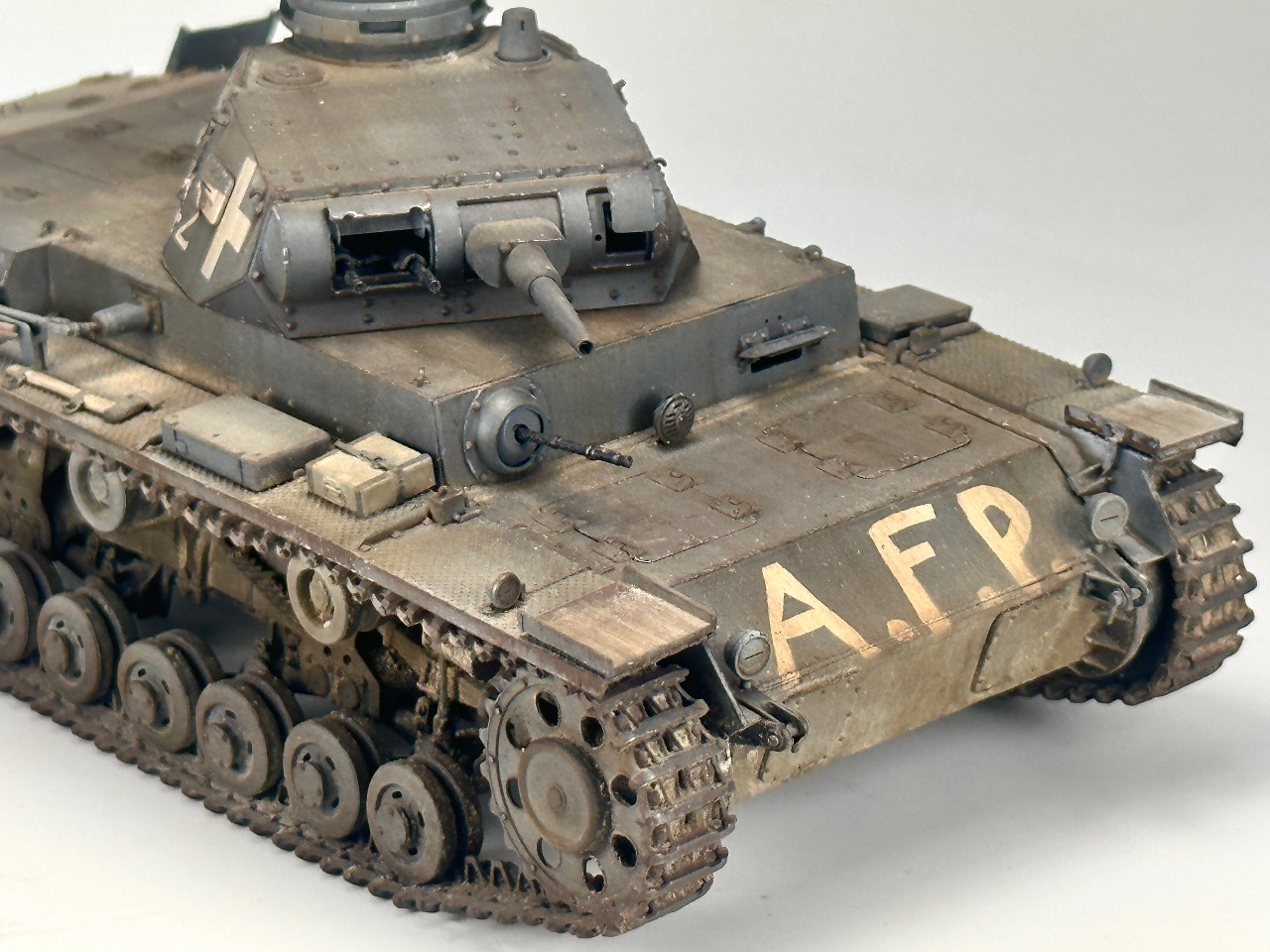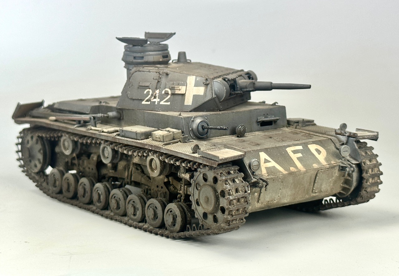 미니아트의 1/35 3호전차 D형입니다 B,C형과도 약간 차이나는 서스팬션이 인상적이네요 전방에 afp라는 문구는 격파는 아니고 어떤 이유에선가 가동불능 상태를 말하는거라네요