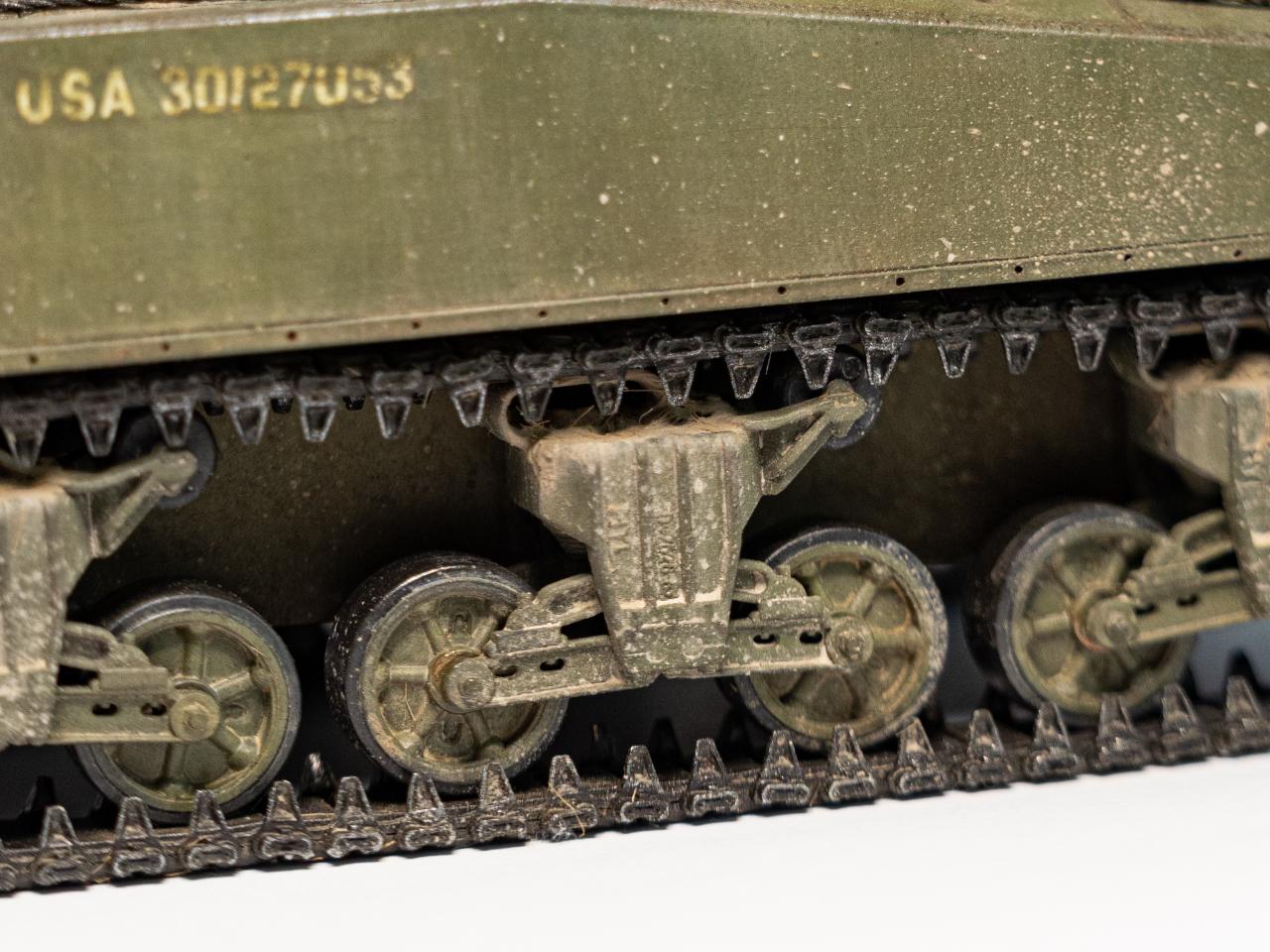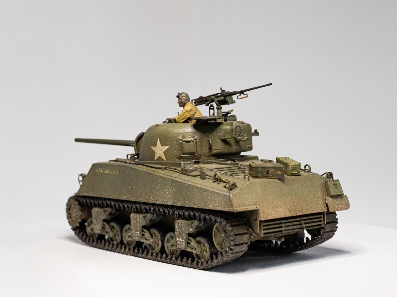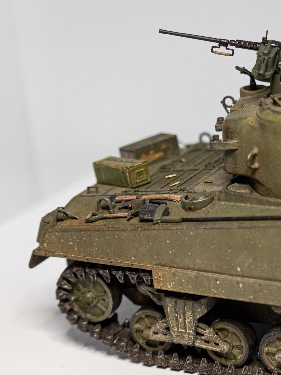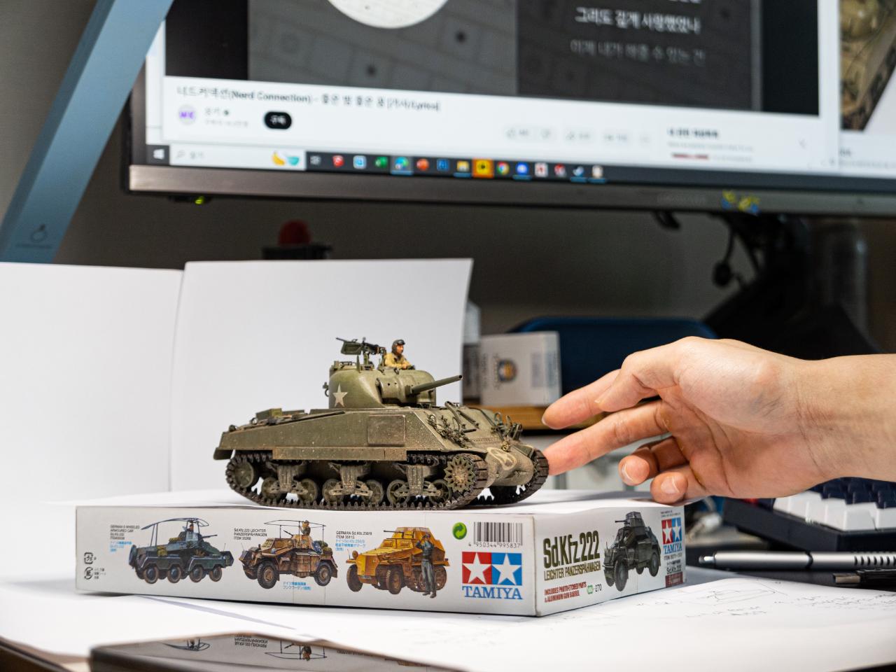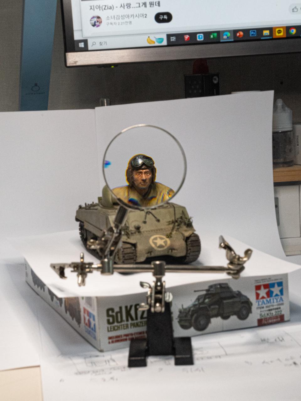 아카데미의 셔먼칼리오페키트에 데프예칭, 미니아트궤도, 타미야전차병 사용해서 완성했습니다. 아카데미셔먼의 높은전고가 마음에들지않아 서프펜션 각도수정 해주었습니다.