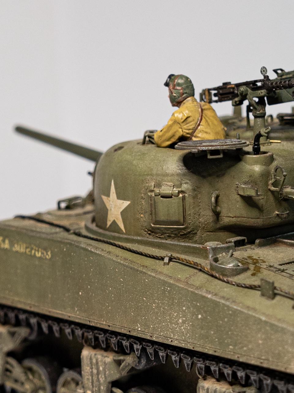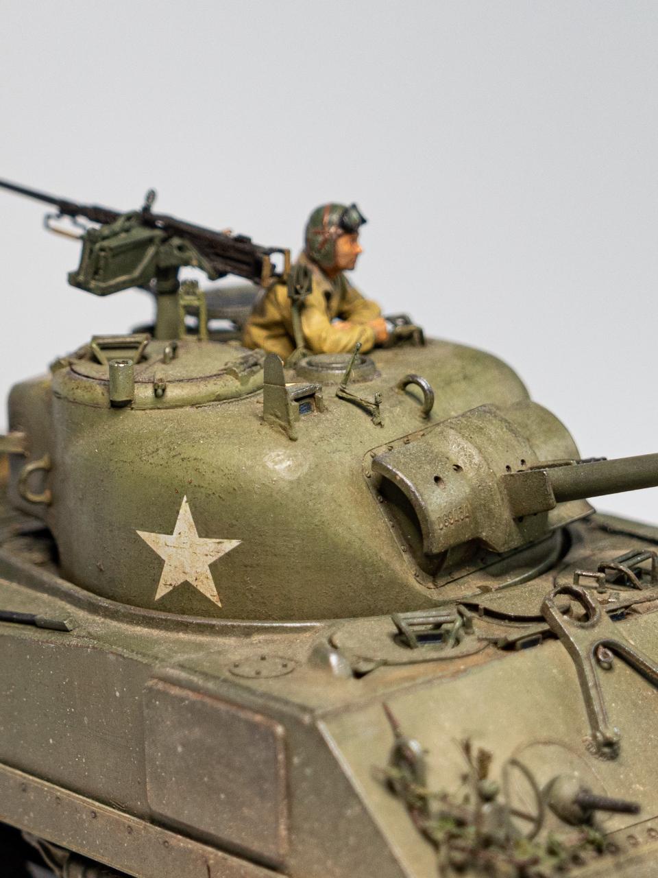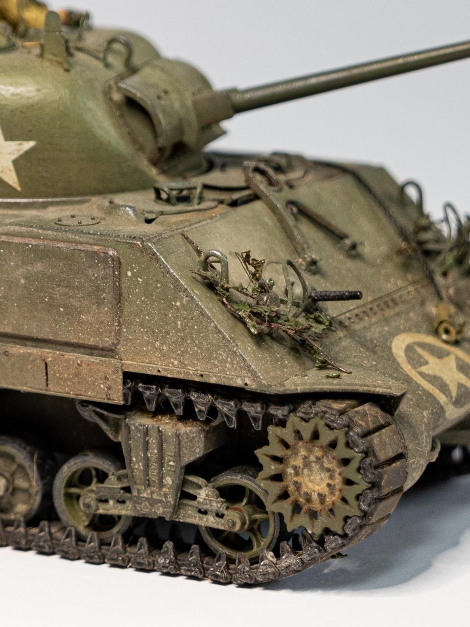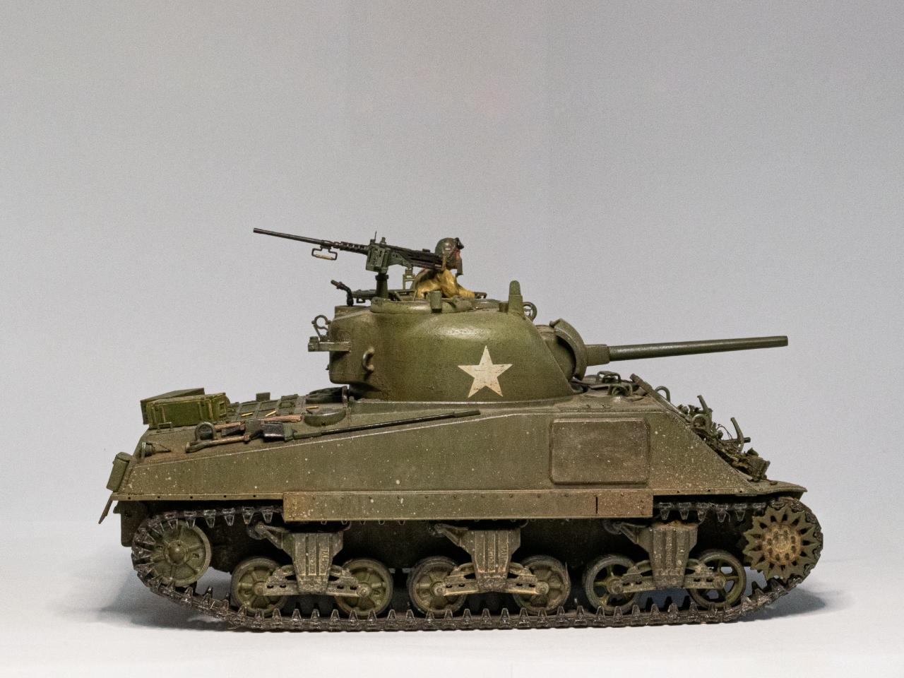 아카데미의 셔먼칼리오페키트에 데프예칭, 미니아트궤도, 타미야전차병 사용해서 완성했습니다. 아카데미셔먼의 높은전고가 마음에들지않아 서프펜션 각도수정 해주었습니다.