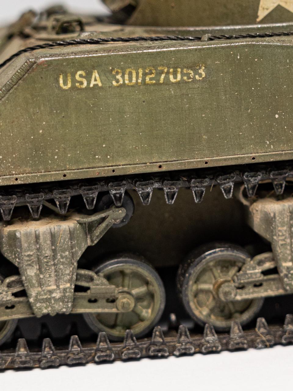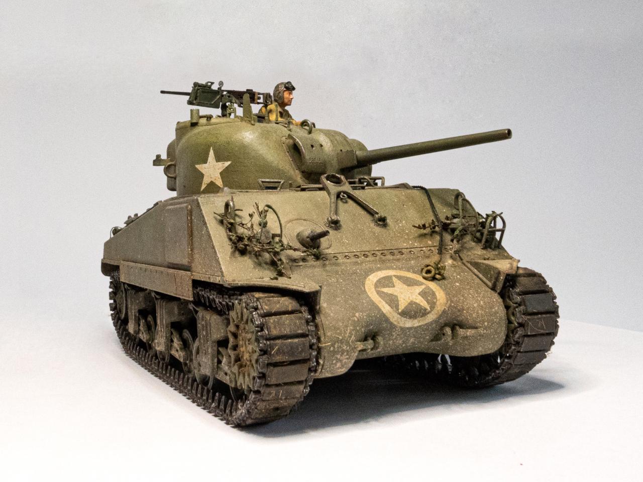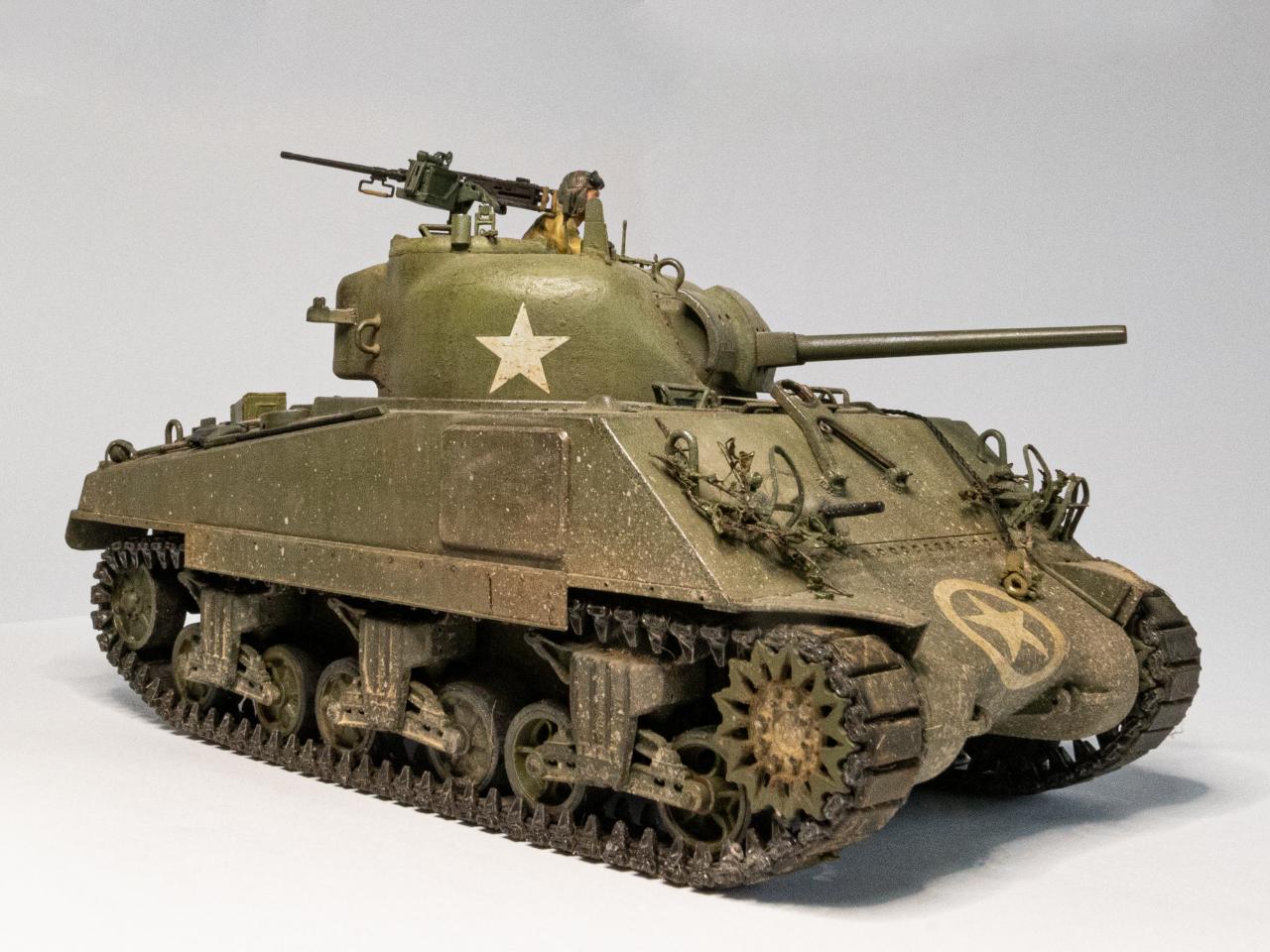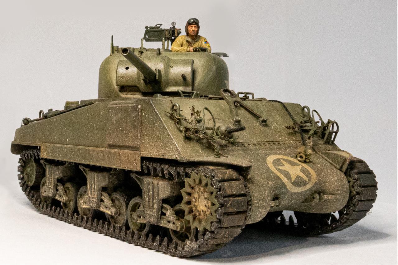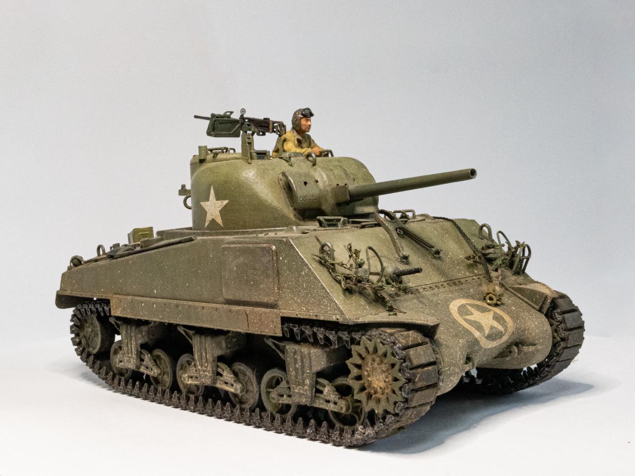 아카데미의 셔먼칼리오페키트에 데프예칭, 미니아트궤도, 타미야전차병 사용해서 완성했습니다. 아카데미셔먼의 높은전고가 마음에들지않아 서프펜션 각도수정 해주었습니다.