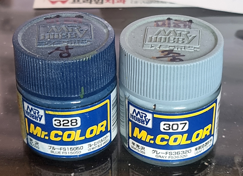 기본적으로 군제 락카 328번과 307번을 사용하는데 그때그때 색상은 약간씩 변합니다. 왜냐하면 에어부러슁 후 남는 도료나 청소하고 남는 희석도료는 다시 병에 부어버리는 경우도 많고 약간씩 변화를 주고자 의도적으로 조색하는 경우도 있어서 딱 색이 고정되어 있지는 않습니다.