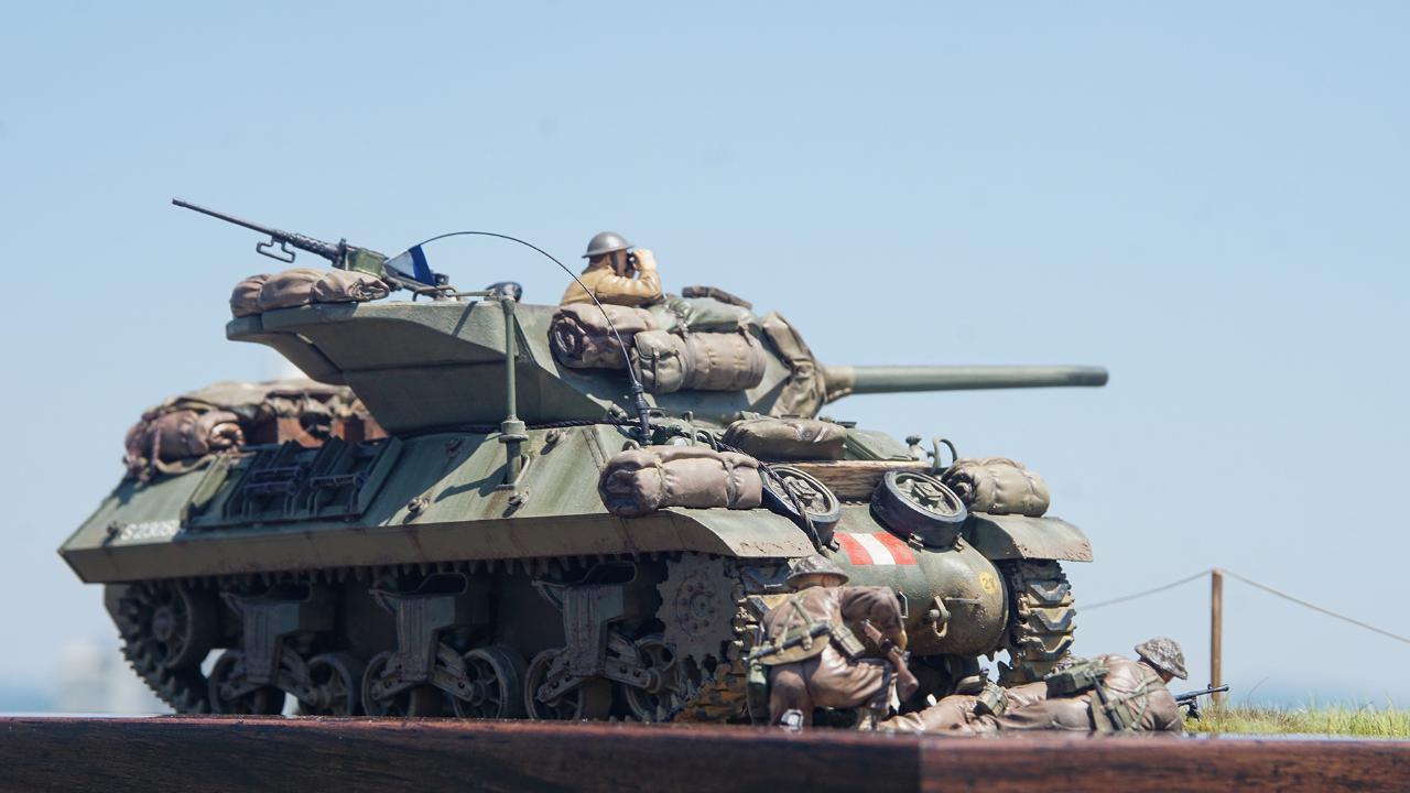 (M10 울버린, 제 20 대전차 연대 소속으로 제 3 사단의 보병들을 지원하고 있다. 노르망디 Sword 해변, 퀸 섹터, 1944년 6월)