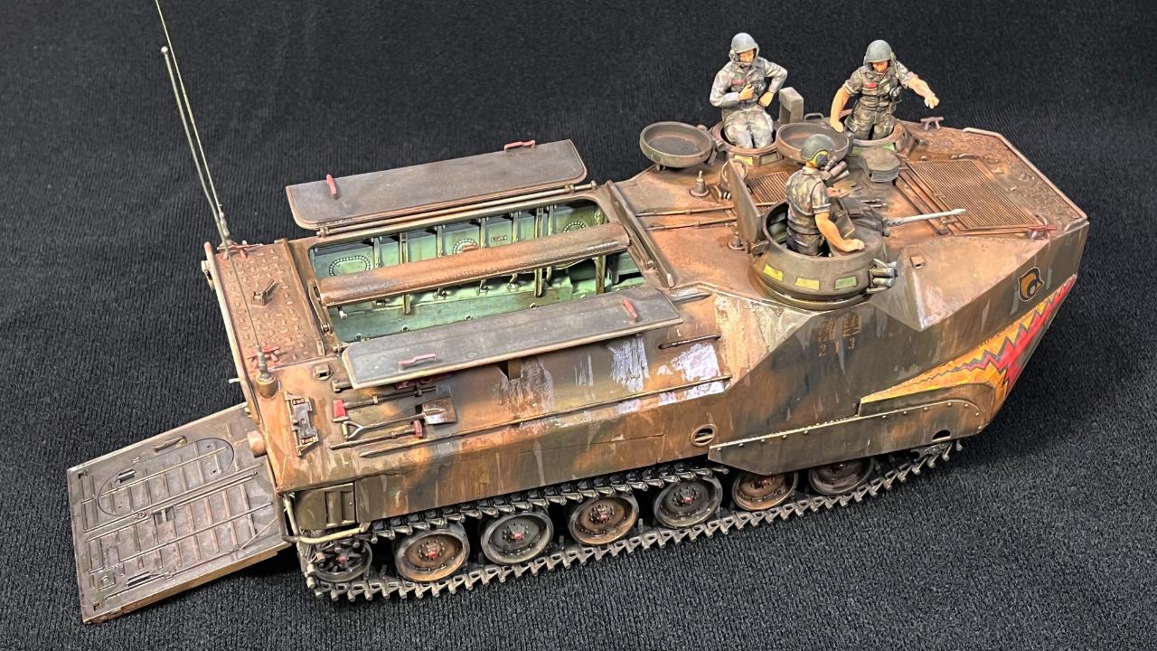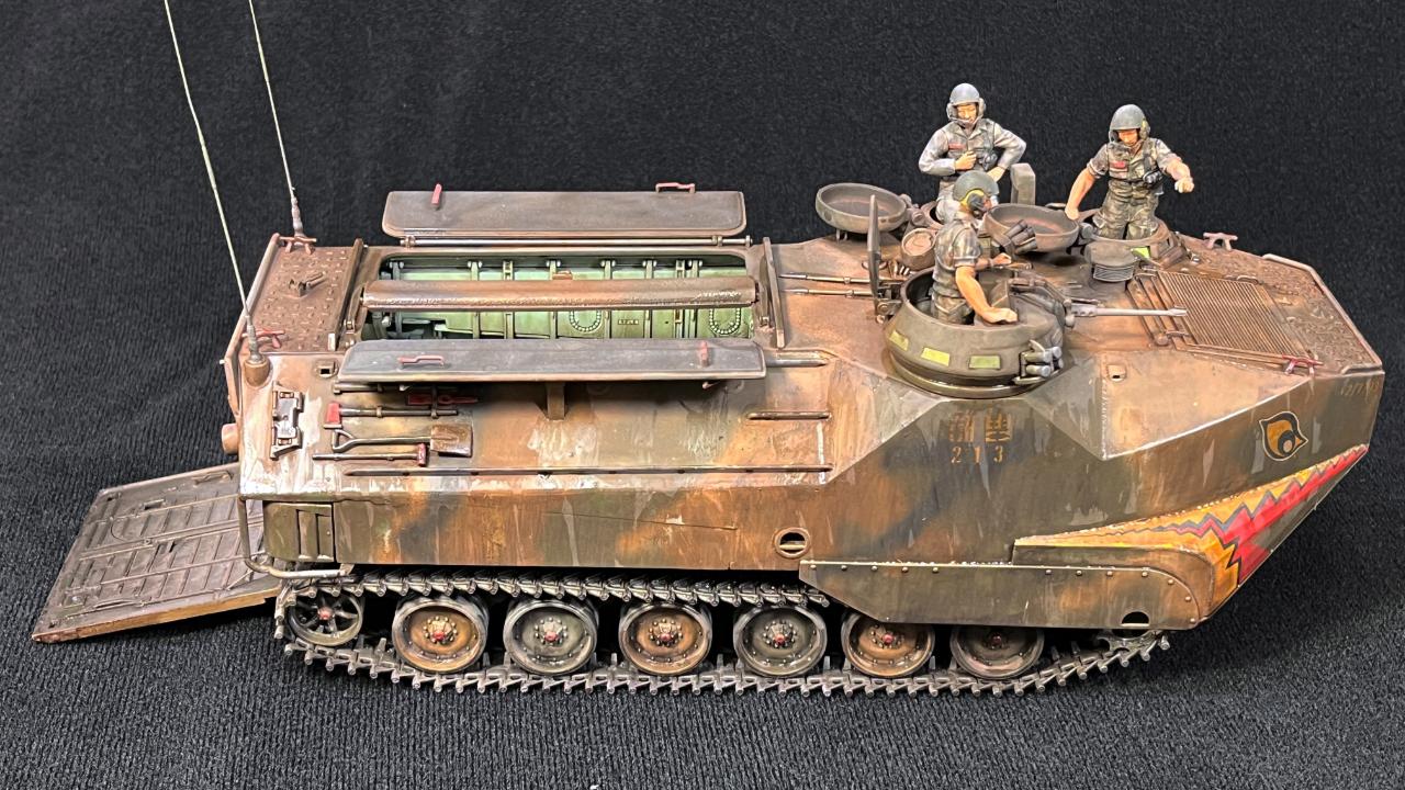 바다에서 막 올라온지 얼마되지 않은(아마도 탑승병들이 모두 뛰쳐나간 후) 시점을 생각하고 만들어서 차량 상판에도 골진곳들에는 아직 물기가 남아있는 표현을 해주었습니다.