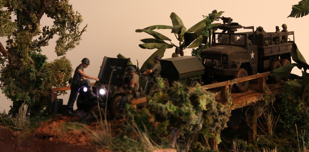 베트남전쟁 디오라마 제작중 M113을 대체할 것으로 M151를 제작하였습니다. 뒷 트레일러에는 건전지를 넣어서 앞 해드라이트에 LED조명이 작동하게 하였습니다. 피규어는 M113에 있는 것을 사용하였습니다.
