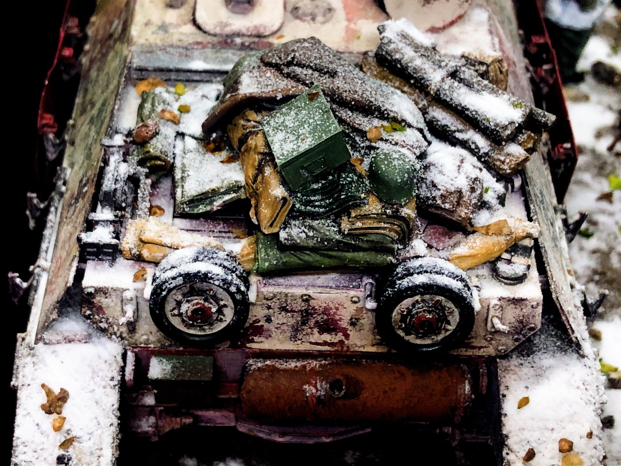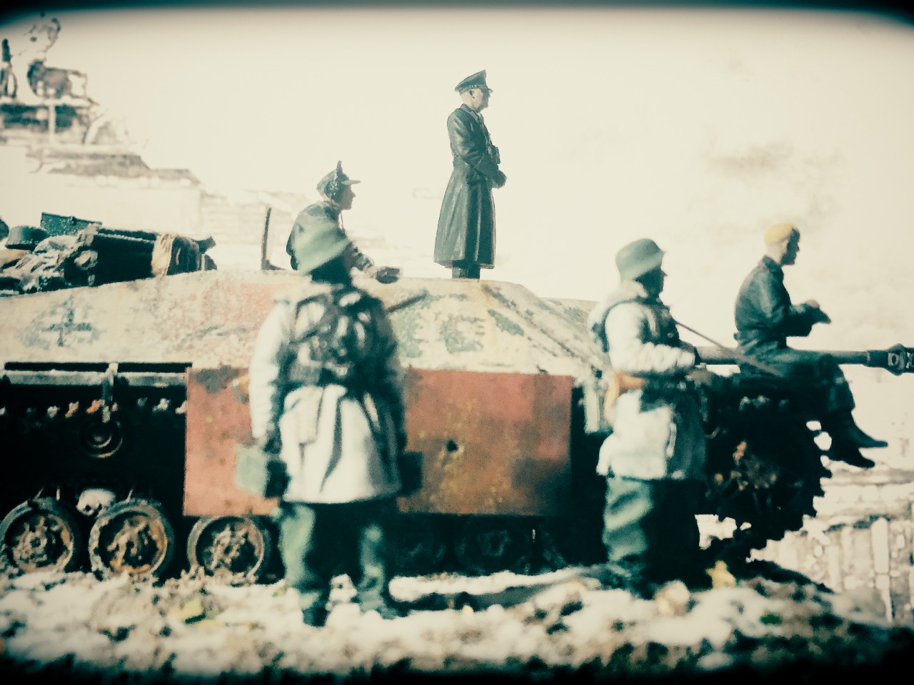 전투에서 천신만고 끝에 승리하고 귀환하였으나 정작 본진이 털려버린 상황을 목격한 전차소대 대원들의 황망한 눈빛.