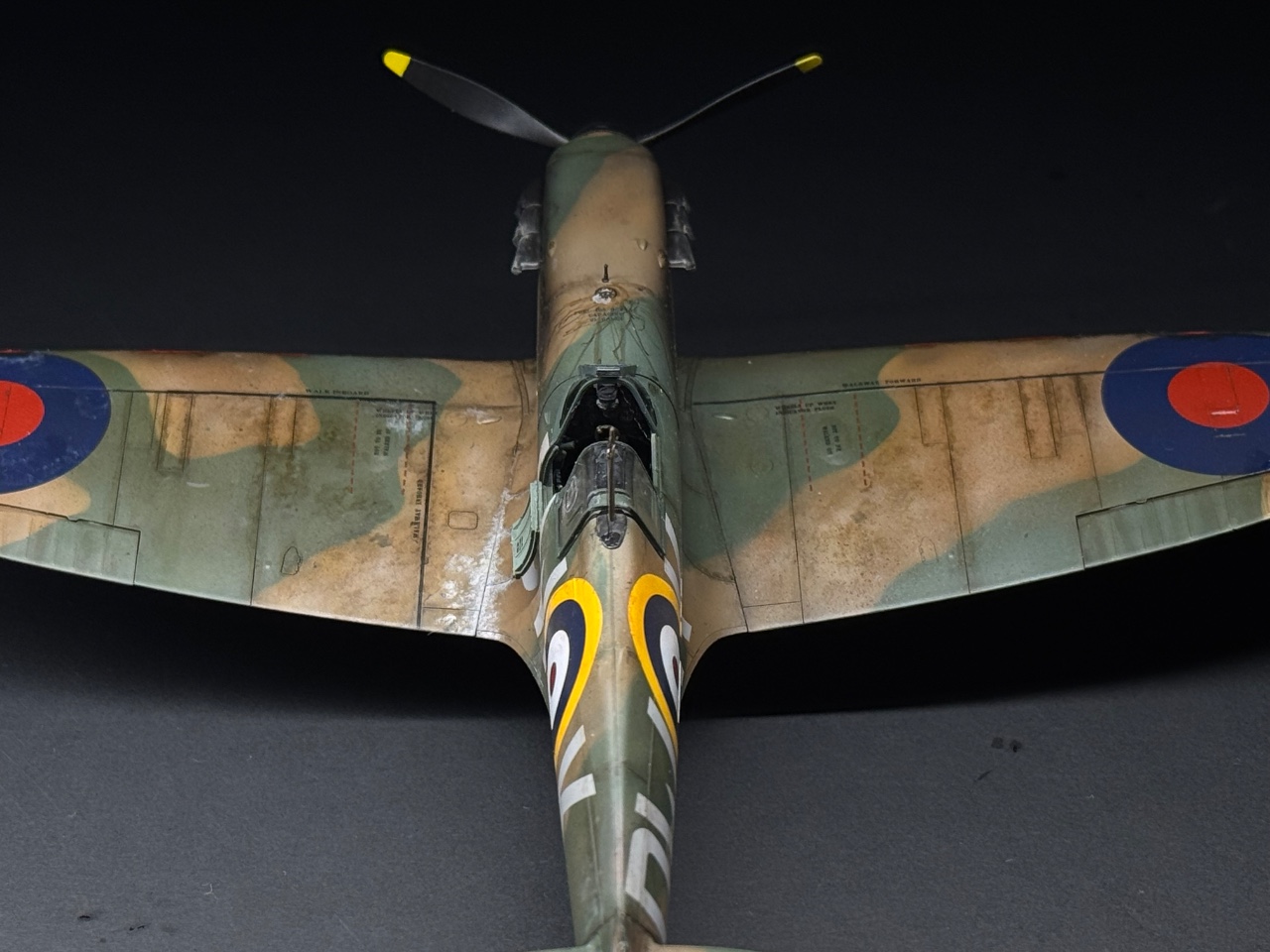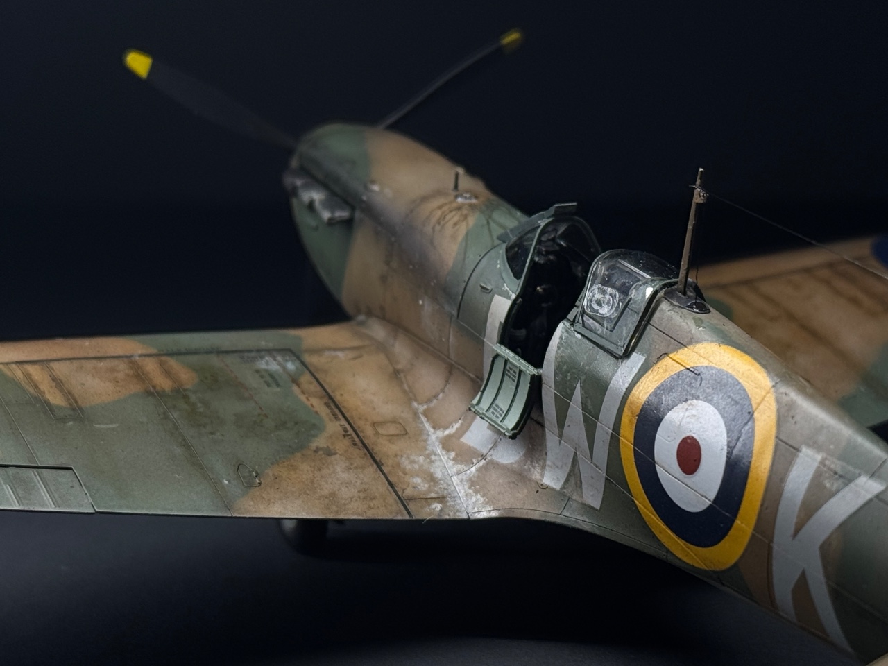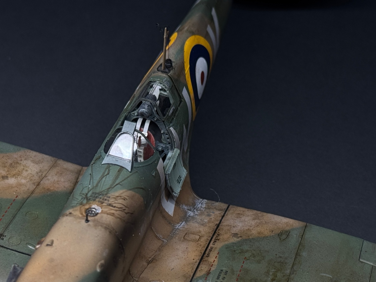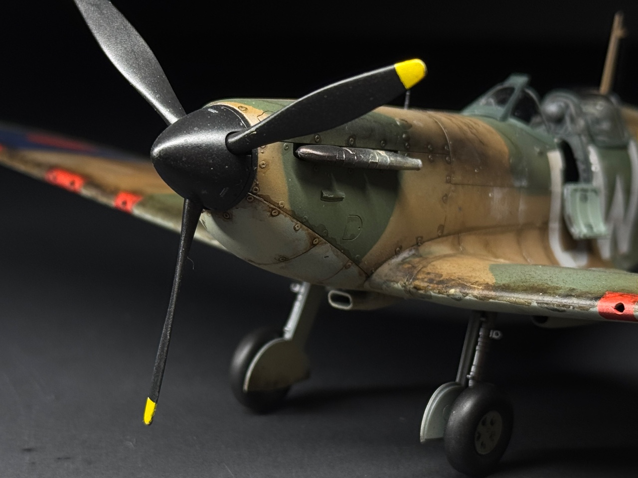 슈퍼마린스핏파이어는 참 좋아하는 기체인데요. 에듀어드가 훌륭하다 생각했는데 타미야도 작업성이 참 좋아서 감탄하며 만들었습니다. 페인트까짐은 최대한 자제하고 구글링하다 찾은 이미지로 기름떡이된 기체를 표현하고자 했습니다. 기체 하부는 적당한 웨더링만 했어요.