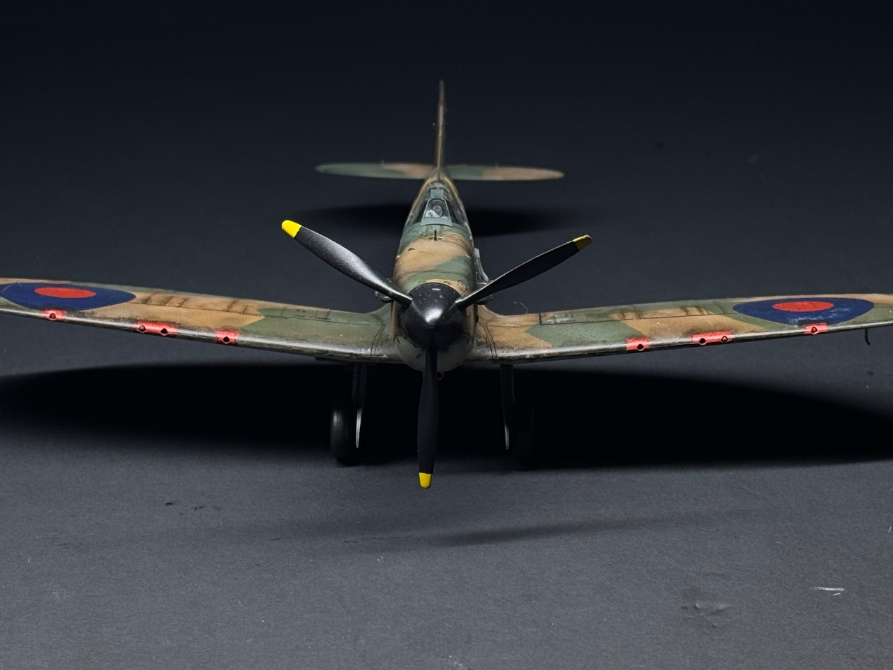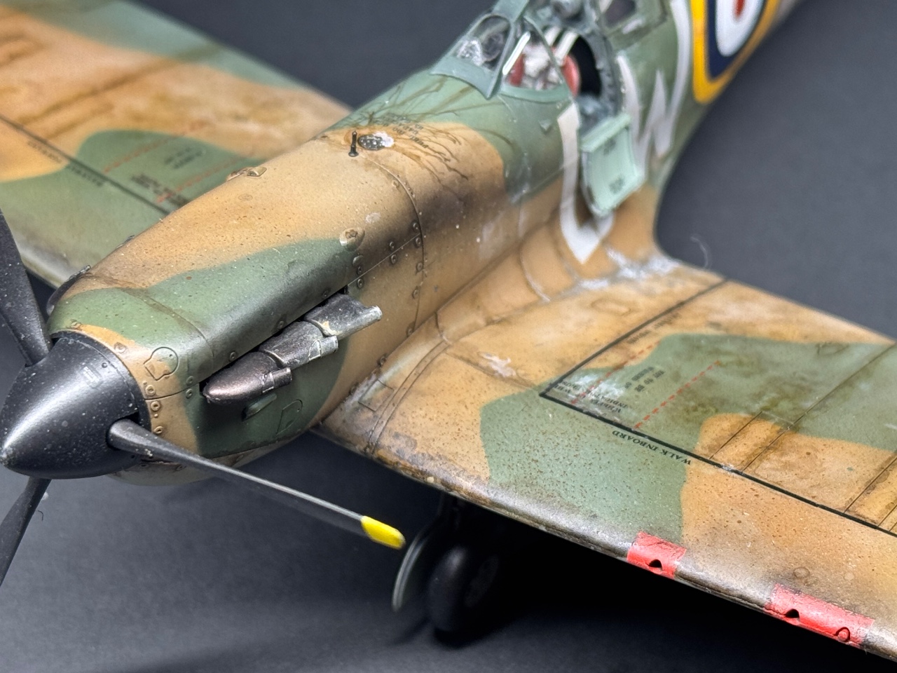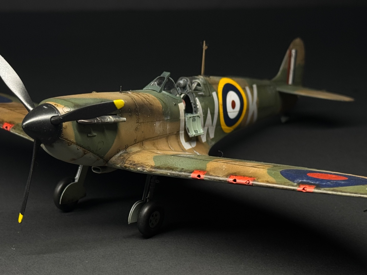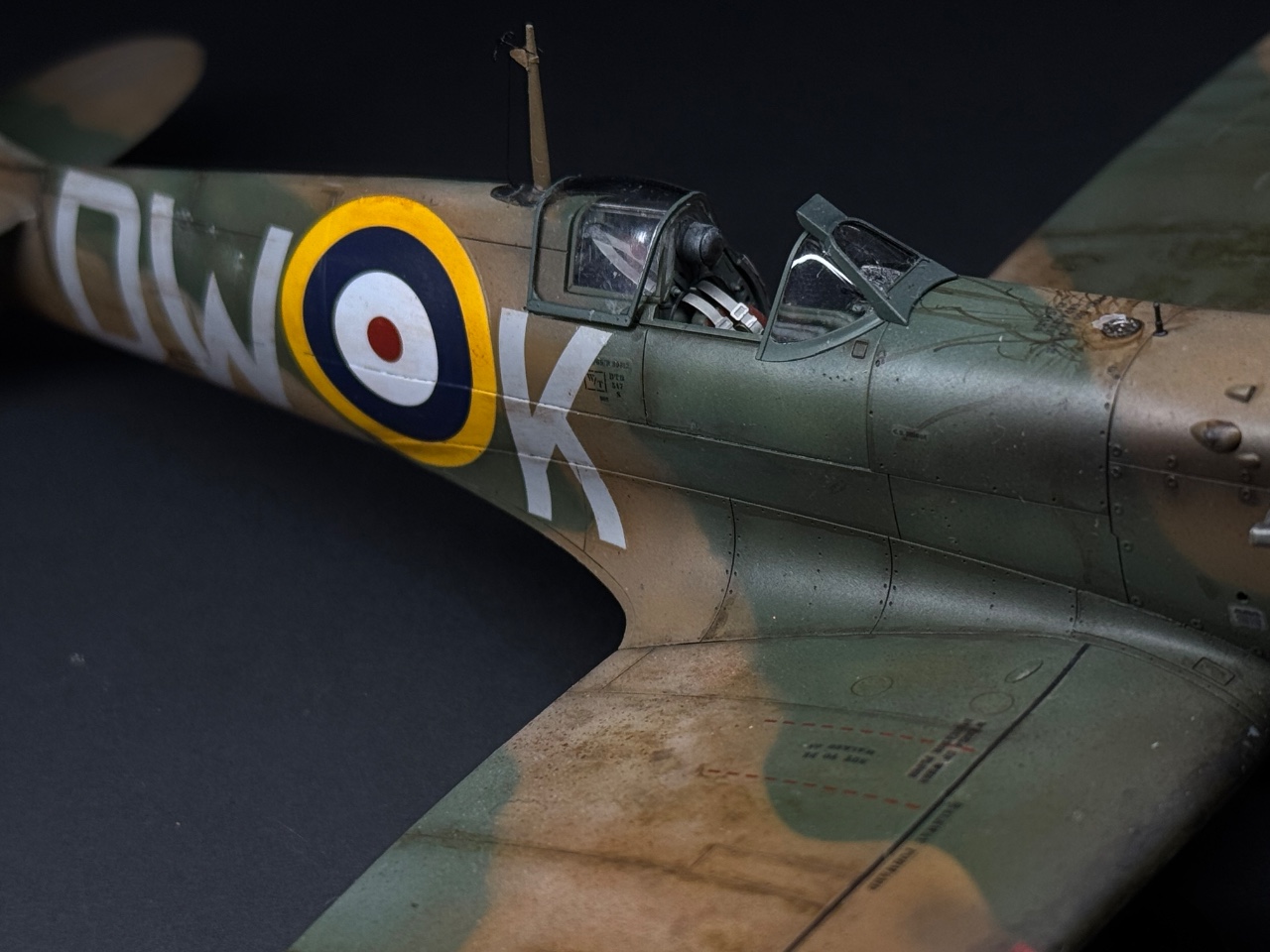 슈퍼마린스핏파이어는 참 좋아하는 기체인데요. 에듀어드가 훌륭하다 생각했는데 타미야도 작업성이 참 좋아서 감탄하며 만들었습니다. 페인트까짐은 최대한 자제하고 구글링하다 찾은 이미지로 기름떡이된 기체를 표현하고자 했습니다. 기체 하부는 적당한 웨더링만 했어요.