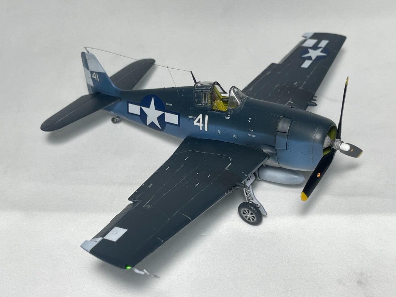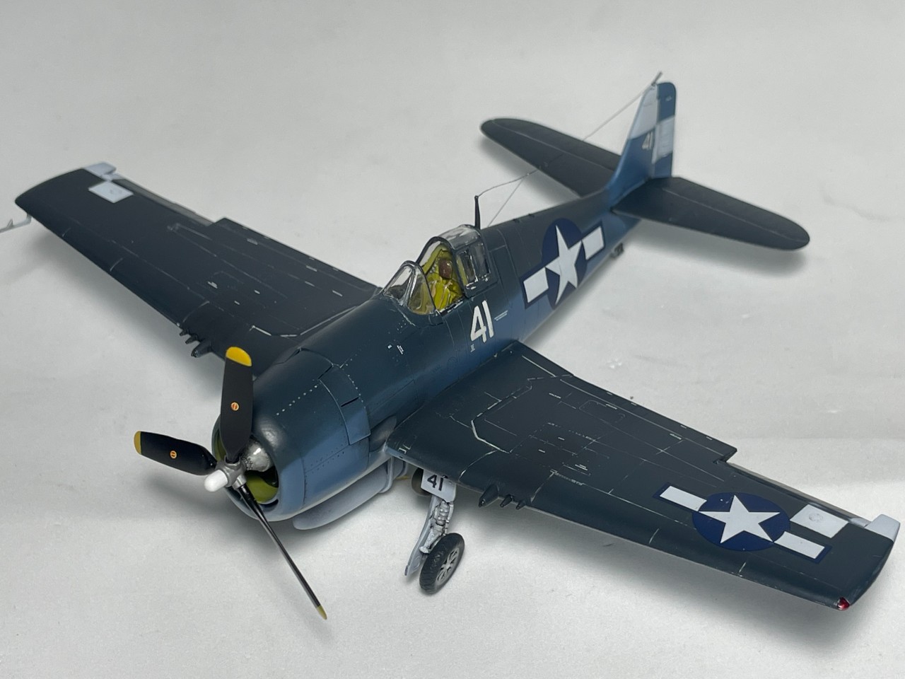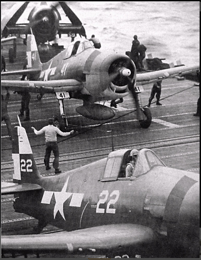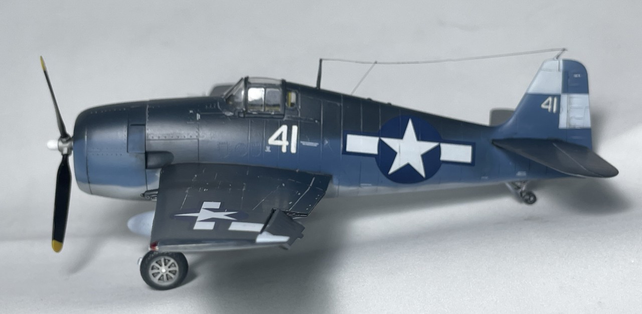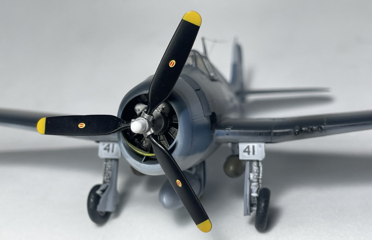 VF-17 졸리로저스는 1944년까지 부갱빌섬에서 활약 후 본토로 복귀하는데 이때 이후의 기록은 거의 찾기가 힘드네요. 근데 찾다보니 41번기의 흑백 사진을 하나 찾을 수 있었습니다. 이사진을 바탕으로 본 키트를 만들었습니다.