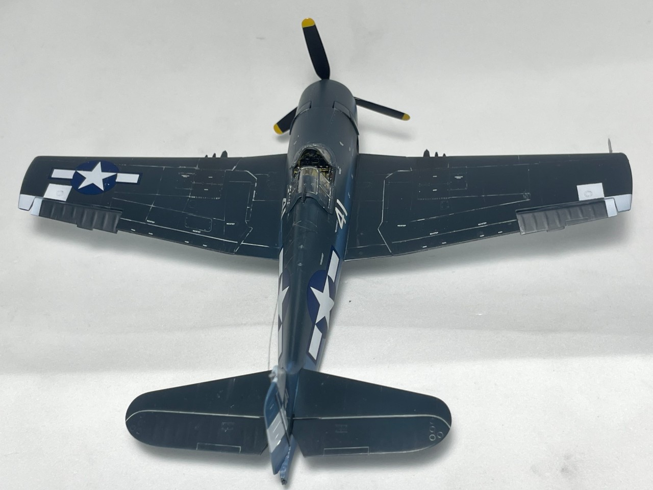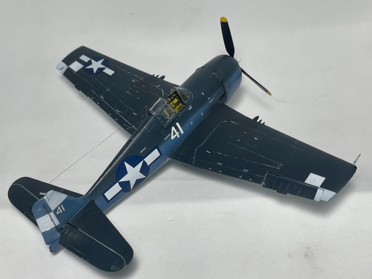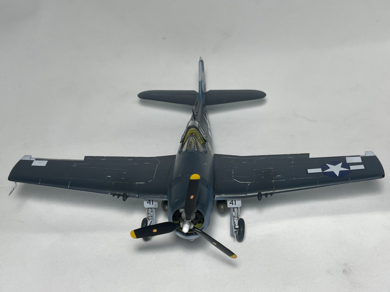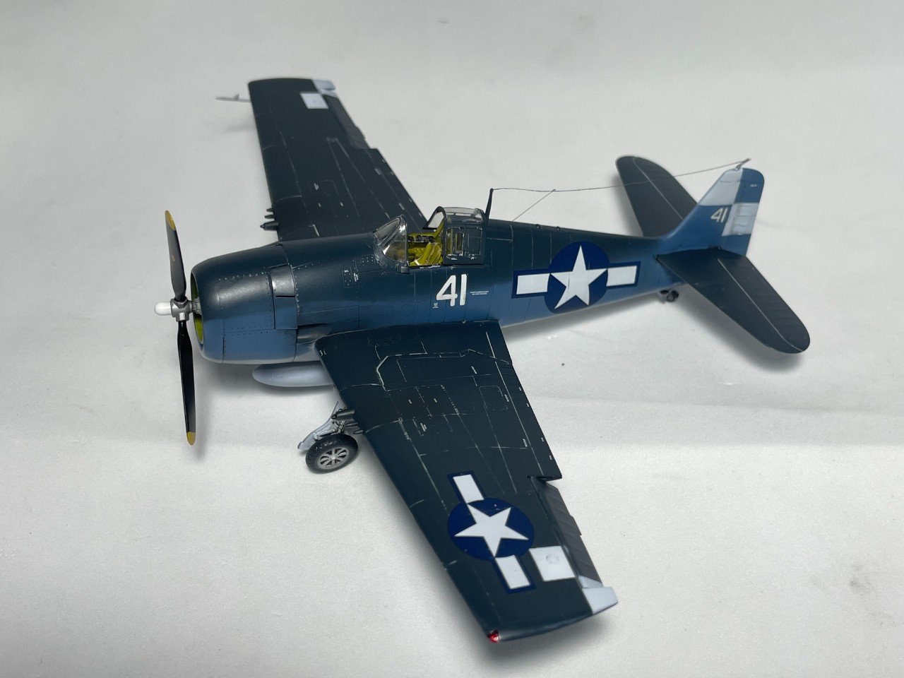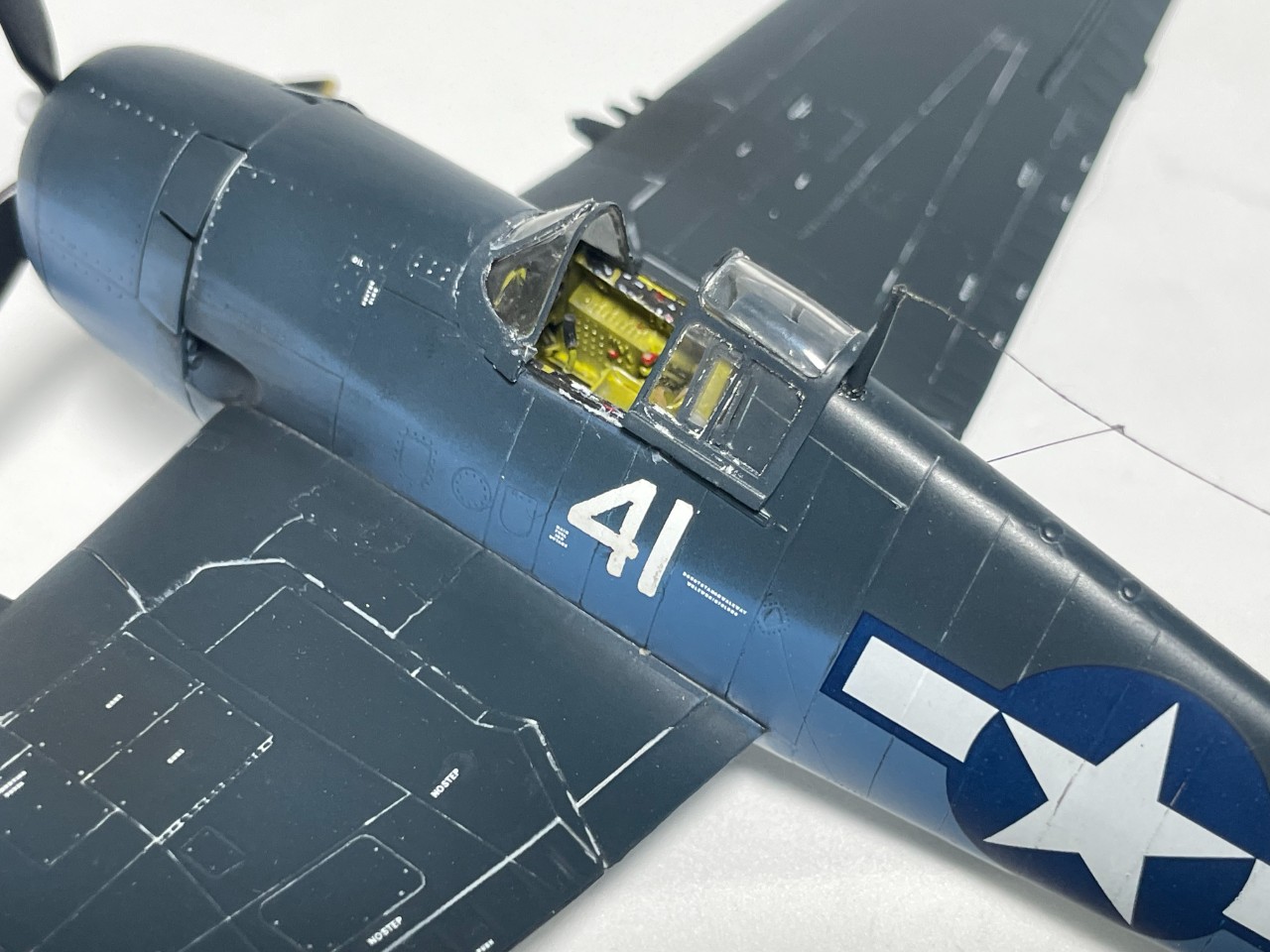 VF-17 졸리로저스는 1944년까지 부갱빌섬에서 활약 후 본토로 복귀하는데 이때 이후의 기록은 거의 찾기가 힘드네요. 근데 찾다보니 41번기의 흑백 사진을 하나 찾을 수 있었습니다. 이사진을 바탕으로 본 키트를 만들었습니다.