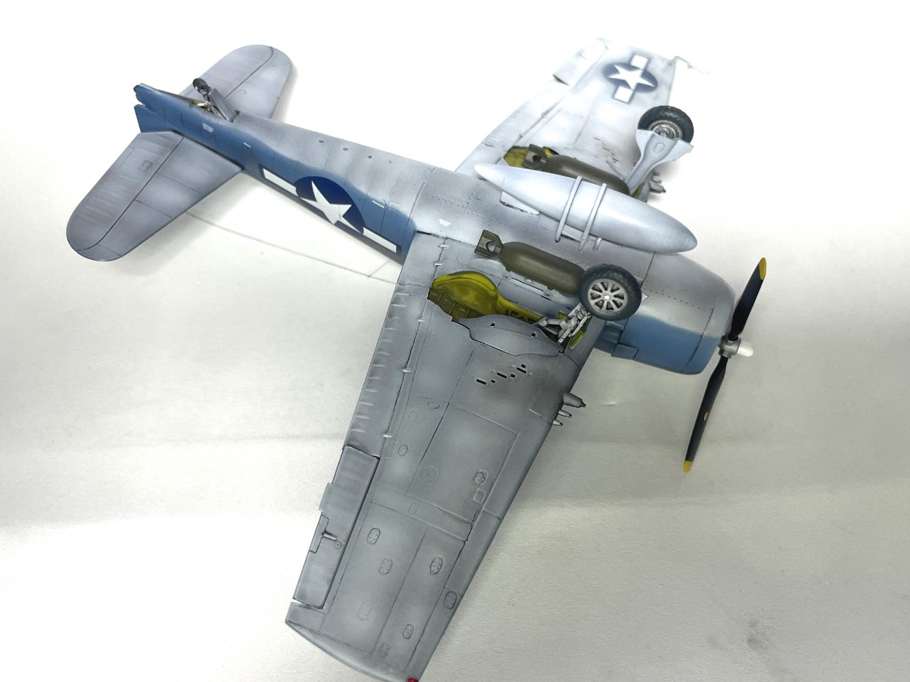 1/72로 F6F-3 키트는 맘에 드는 것이 없었는데, 드래곤의 이 키트는 몇 가지를 제외하곤 디테일이 아주 뛰어나 상당히 맘에 들었습니다. 다만 랜딩기어의 바퀴 조립시 브레이크 유압 케이블파츠와 간섭이 있어 삐닥하게 조립이 되네요, 제가 잘못한건지....ㅜ.ㅜ